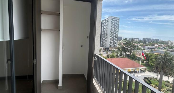 Se arrienda Depto. de 1D1B en Piso 16, Orientación Oriente. Vista despejada, Balcón y Conexión a lavadora
