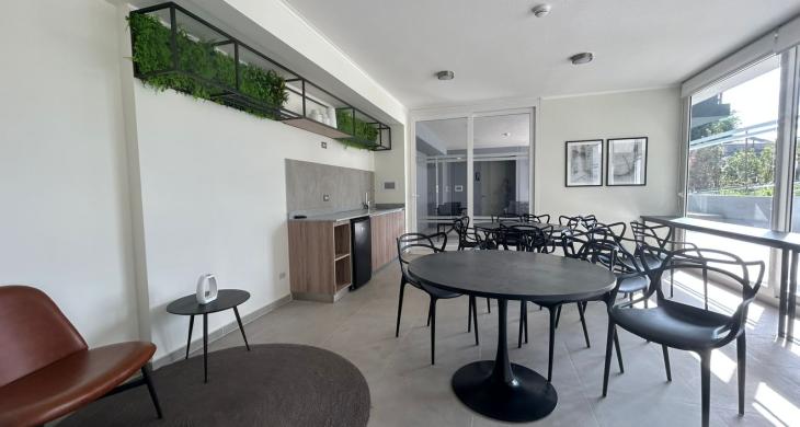 Edificio cuenta con áreas comunes como seguridad 24/7, quinchos, salón común, Lavandería, Piscina, estacionamiento de visitas, cercano a comercios, clínicas, locomoción colectiva entre otras...