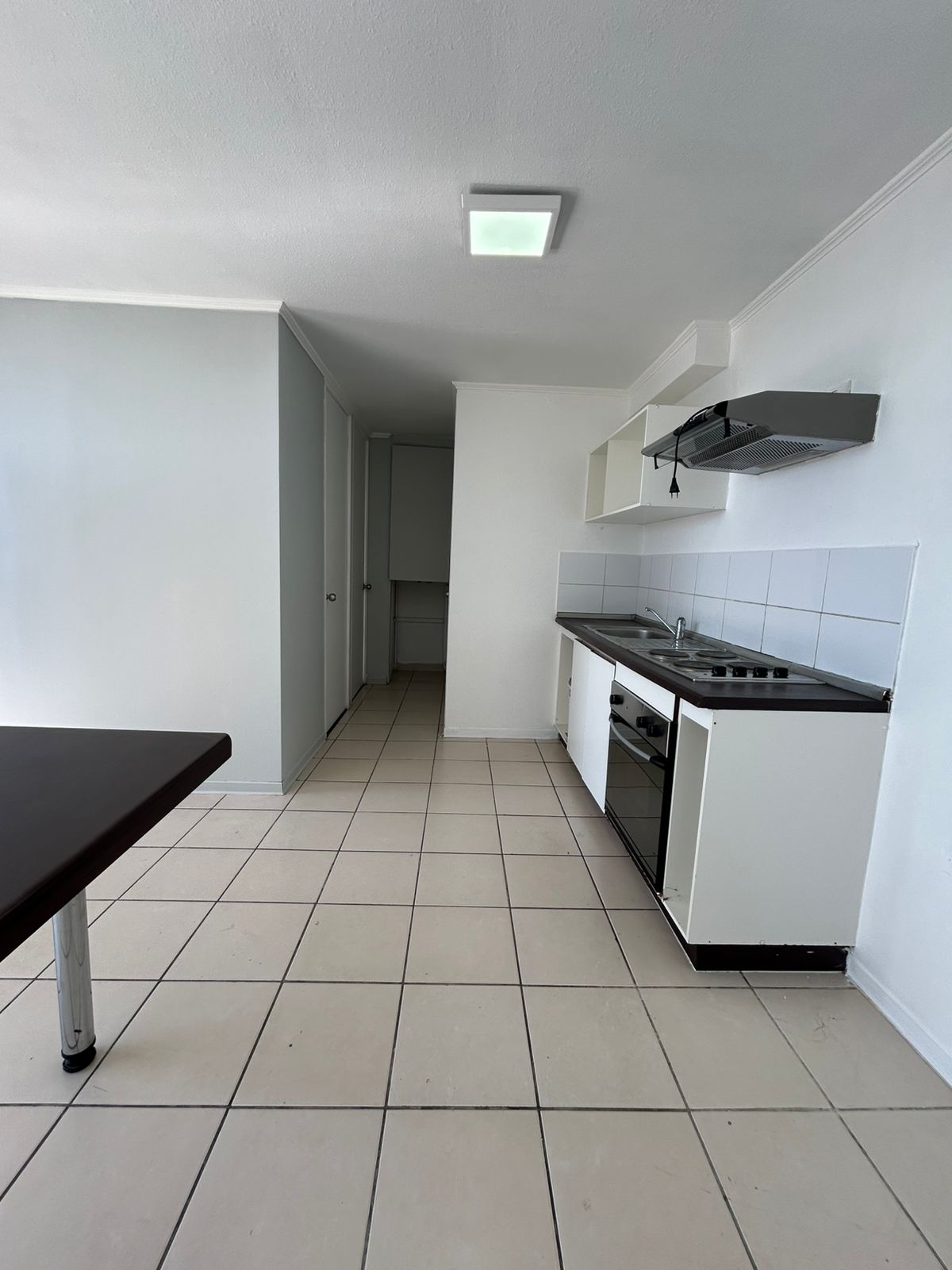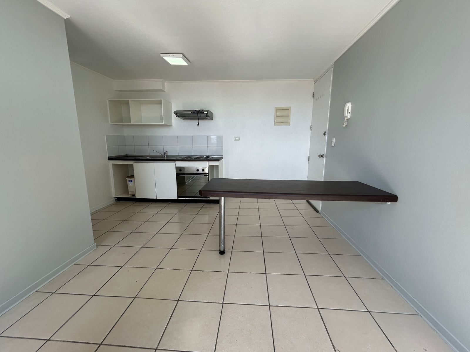 Departamento cuenta con barras para cortinas, focos, Walking Closet y cocina equipada con Horno, Encimera y Campana.