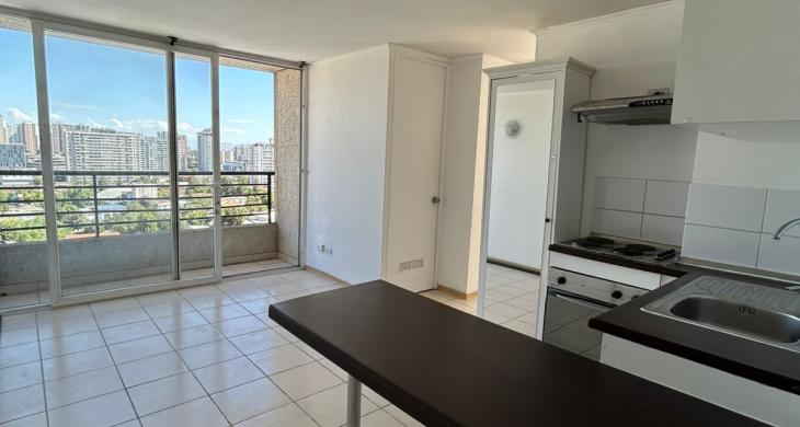 Se arrienda Depto. de 2D1B con Estacionamiento incluido, balcón, termo para el agua caliente y conexión a lavadora, ubicado en Piso 16, Orientación Poniente. Cercano a Metro Hospitales.