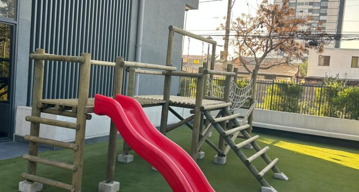El departamento cuenta con finas terminaciones y un diseño que prioriza el confort y la funcionalidad. El edificio ofrece seguridad las 24 horas, garantizando la tranquilidad de sus residentes. ÁREAS COMUNES: - Quinchos en azotea - Salón común - Co-work - GyM con zona para Calistenia - Áreas verdes - Juegos para niños - Piscina - Zona de reciclaje, cercano a comercios, clínicas, locomoción colectiva entre otras…