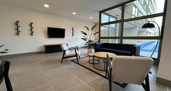 Edificio cuenta con áreas comunes como seguridad 24/7, Quinchos, Salones, Juegos para niños, Estacionamiento de visitas, cercano a comercios, Autopista Central, Colegios, Locomoción colectiva entre otras