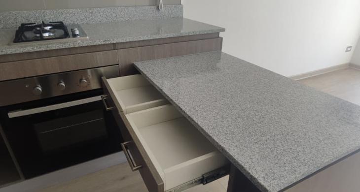Depto. cuenta con cocina encimera, horno y campana, a gas natural, balcón con vista despejada y conexión a lavadora.