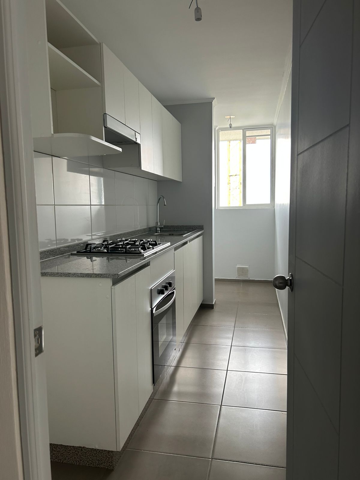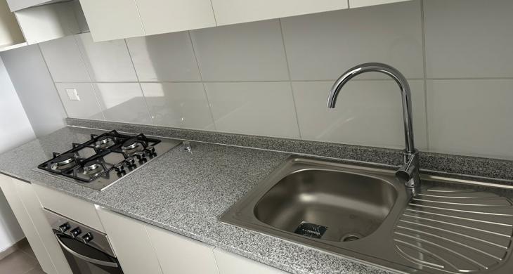 Depto. cuenta con cocina encimera, horno y campana, gas natural.