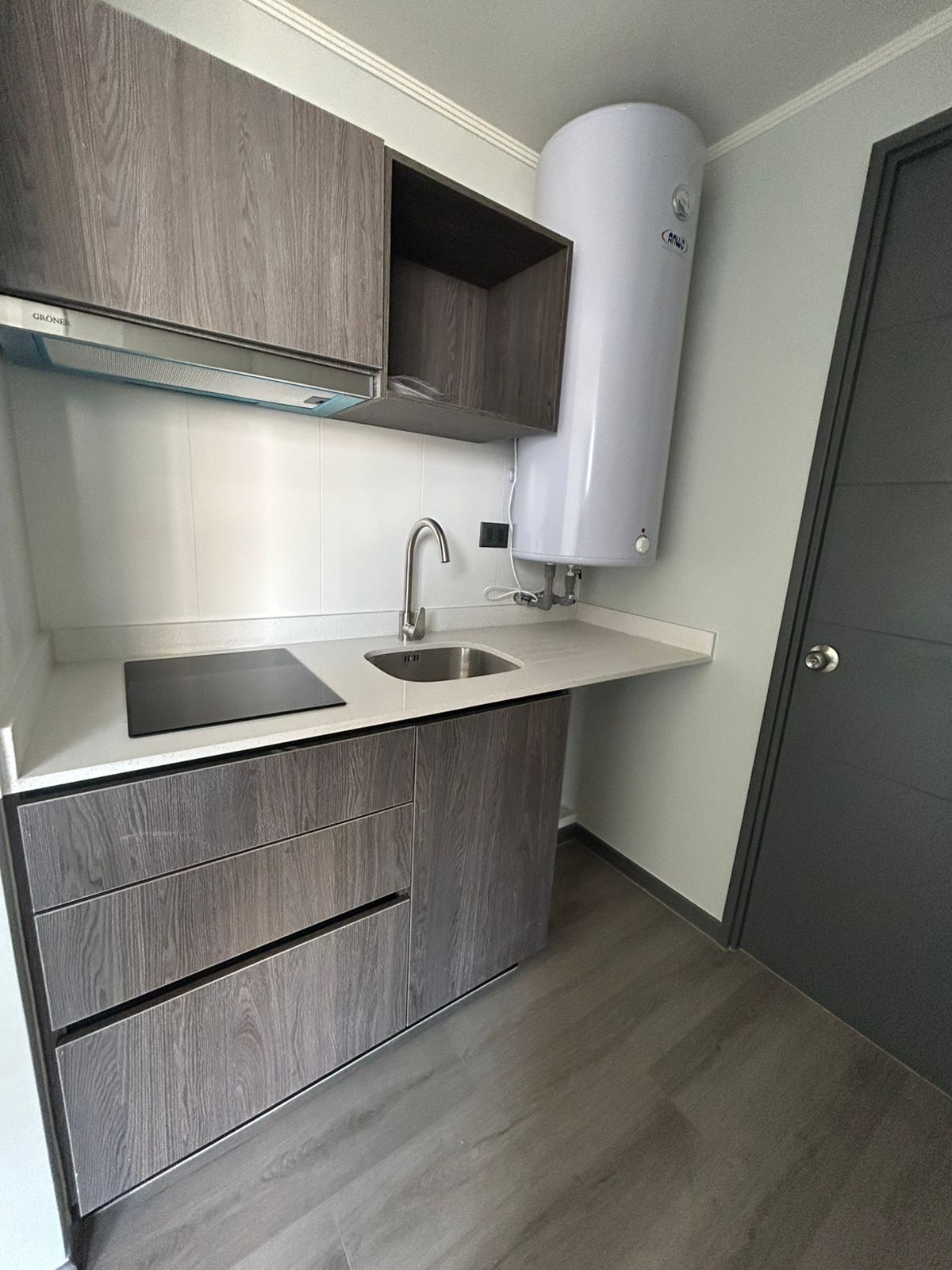 Depto. cuenta con cocina encimera, horno y campana.