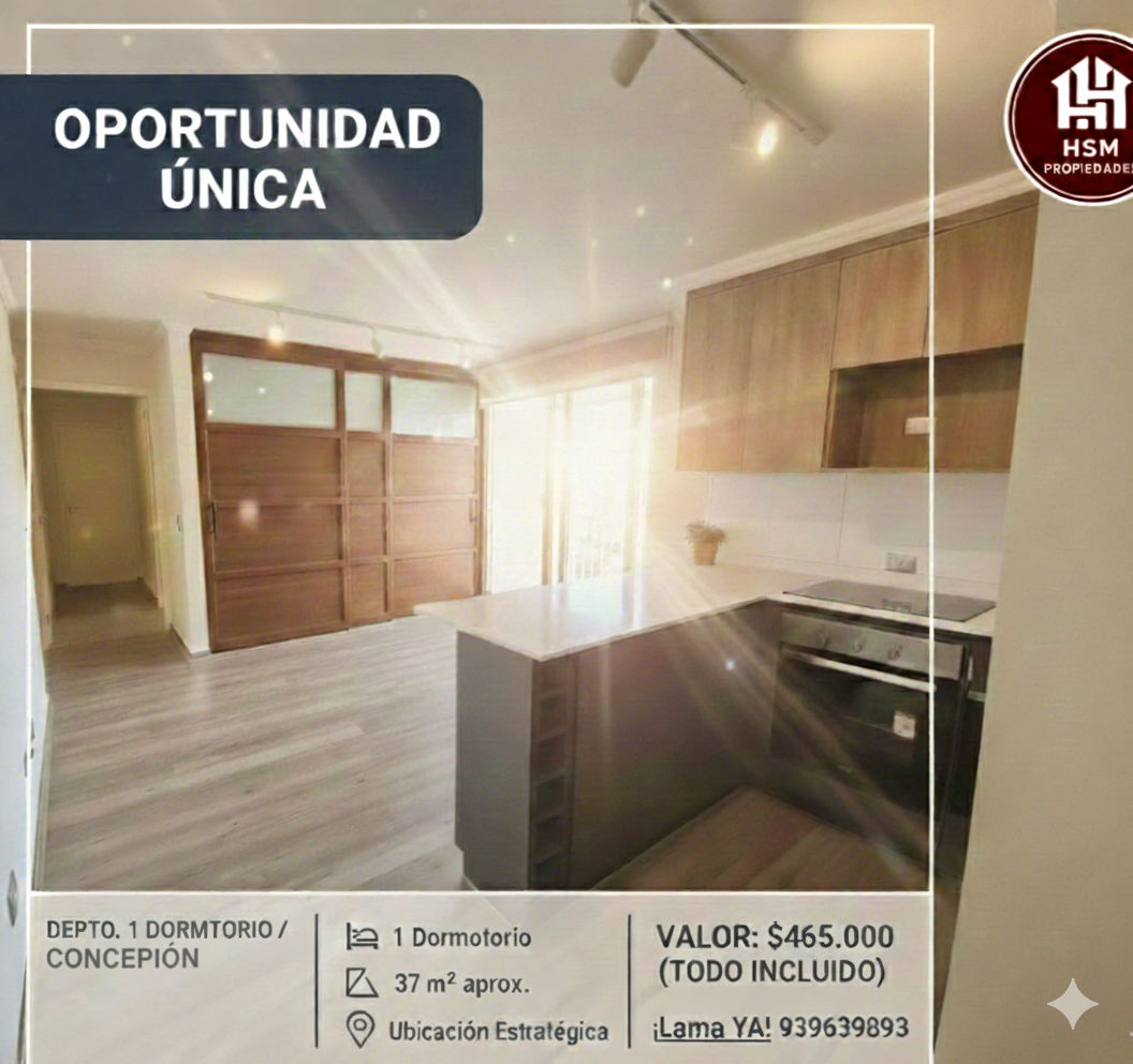 Descubre el equilibrio perfecto entre confort y estilo de vida en este encantador departamento de 1 dormitorio, ubicado en el corazón de Concepción. Con una ubicación estratégica, a pasos de universidades, comercio, restaurantes y mall, este departamento es ideal para estudiantes, profesionales o parejas que buscan un lugar acogedor y funcional.