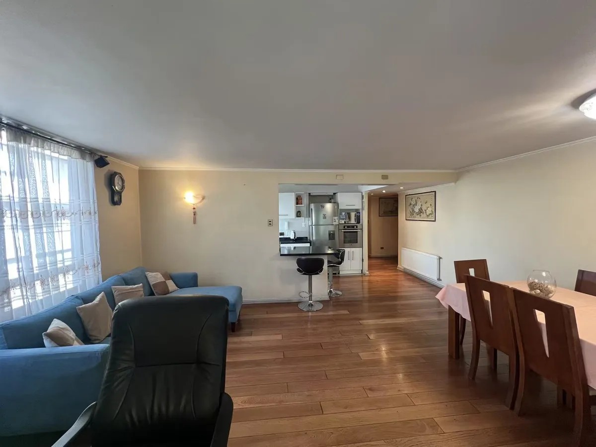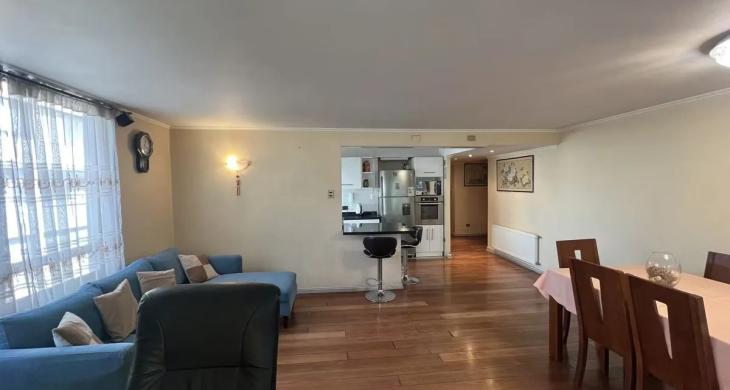 Excelente departamento en un cuarto piso con entrada a amplia sala living y comedor, con salida a terraza de muy buen tamaño, orientación Sur Oriente.