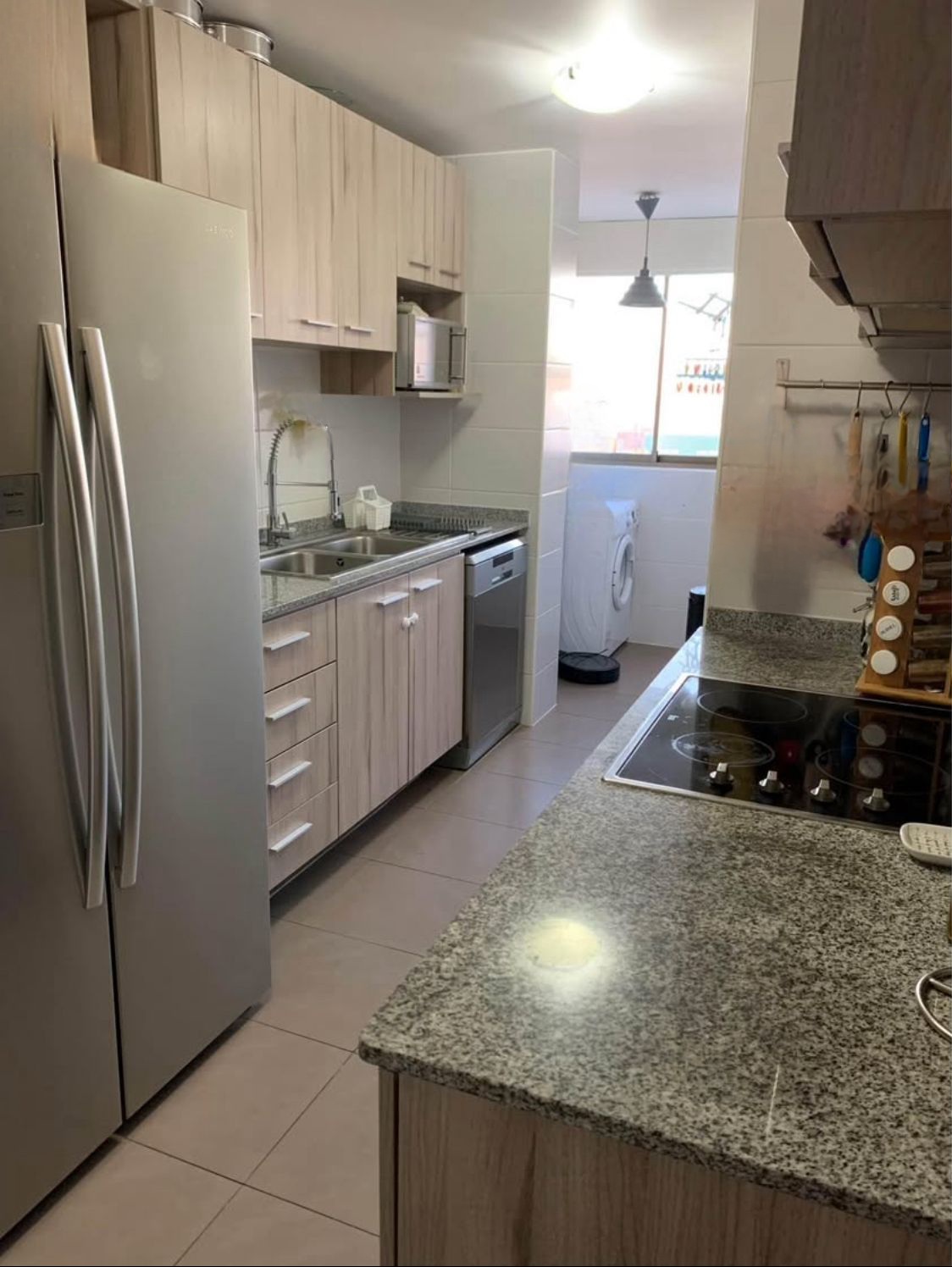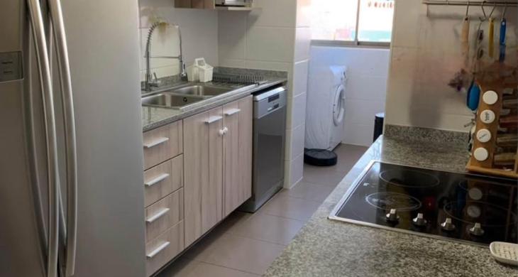 Cocina cerrada amoblada y equipada