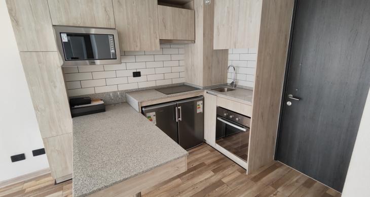 Cuenta con 2 dormitorios, 2 baños. Dormitorio principal en suite, segundo dormitorio pequeño, con clóset. Cocina incorporada, totalmente equipada. Incluye cocina encimera eléctrica, horno microondas, refrigerador y freezer. 50m2 totales.