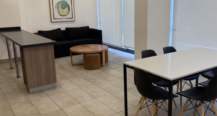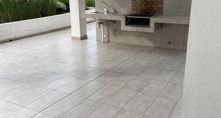 La distribución interna contempla tres amplios dormitorios, diseñados para garantizar el descanso y la privacidad. La habitación principal cuenta con baño en suite, proporcionando un refugio personal de alto estándar. En total, la propiedad dispone de dos baños completos con terminaciones modernas. El área social se integra de manera elegante con una terraza de 5 metros cuadrados, perfecta para disfrutar del entorno urbano desde una perspectiva elevada en uno de los pisos más altos del edificio, lo que asegura tranquilidad y una vista despejada hacia los alrededores de la Ciudad Jardín.