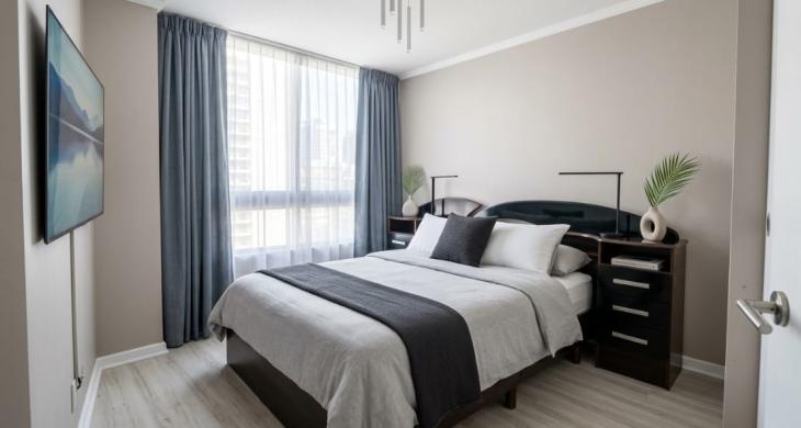 Este departamento en venta, situado en el cuarto piso de un moderno edificio de veintiún niveles construido en el año 2019, cuenta con una superficie total de 52 metros cuadrados eficientemente distribuidos para maximizar cada espacio habitable. La configuración interior ofrece dos dormitorios amplios, destacando la habitación principal en suite para brindar la máxima privacidad y confort, complementada por un segundo baño completo con terminaciones de excelente calidad. La zona social se conecta armoniosamente con una terraza de 4 metros cuadrados, espacio ideal para disfrutar de la ventilación natural y la dinámica atmósfera del sector centro de la ciudad.