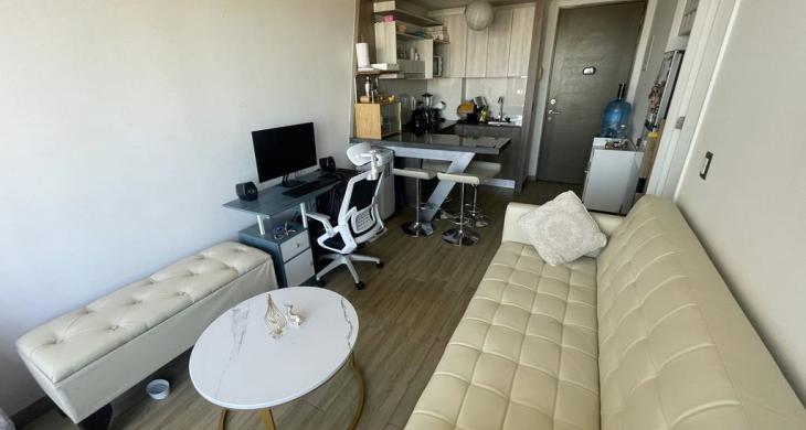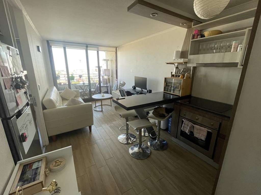 Excelente departamentoen un décimo piso, para vivir e inversión. con entrada a sala living y comedor muy acogedor y luminoso, salida a terraza de buen tamaño.
