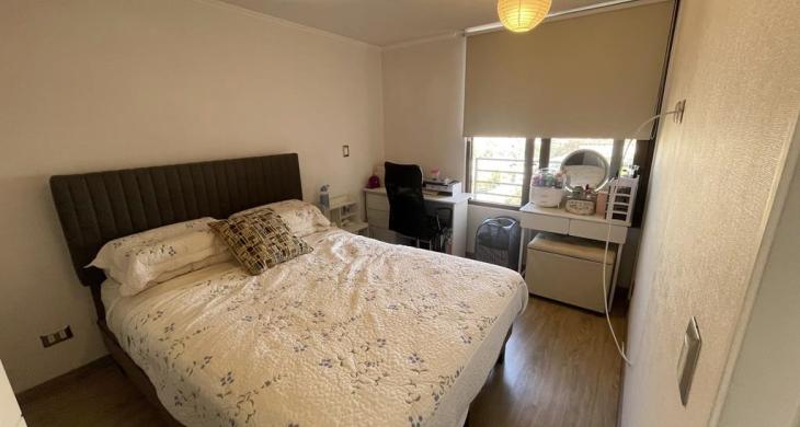 Un agradable dormitorio con capacidad para cama king, ventanas altas y vista despejada. Closet de muy buena capacidad, y un baño completo muy cómodo con tina y ducha, mueble en lavamanos y conexión a lavadora.
