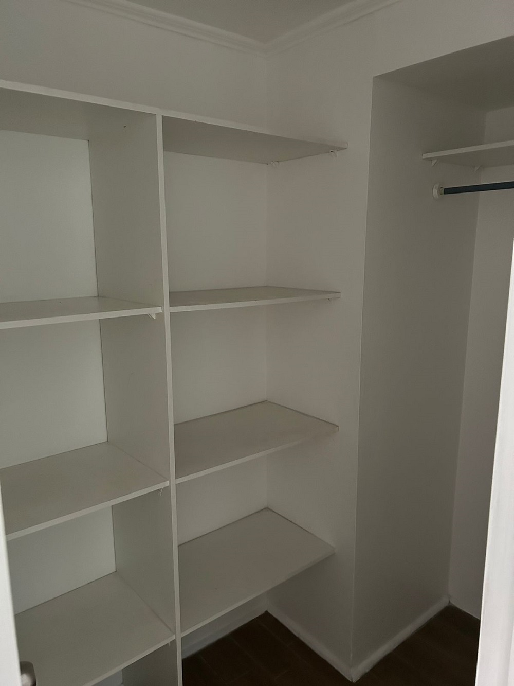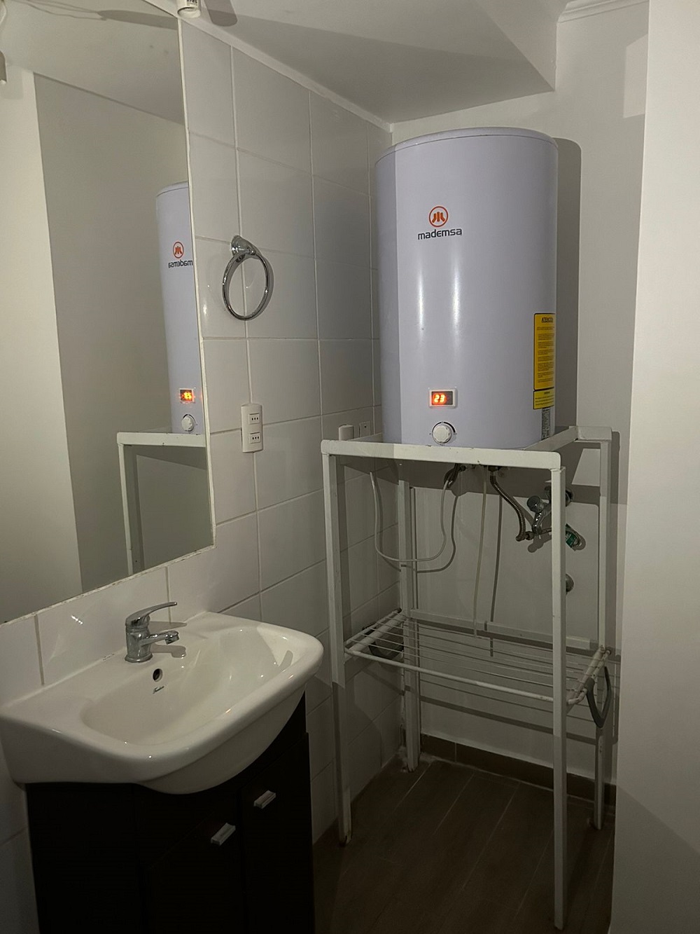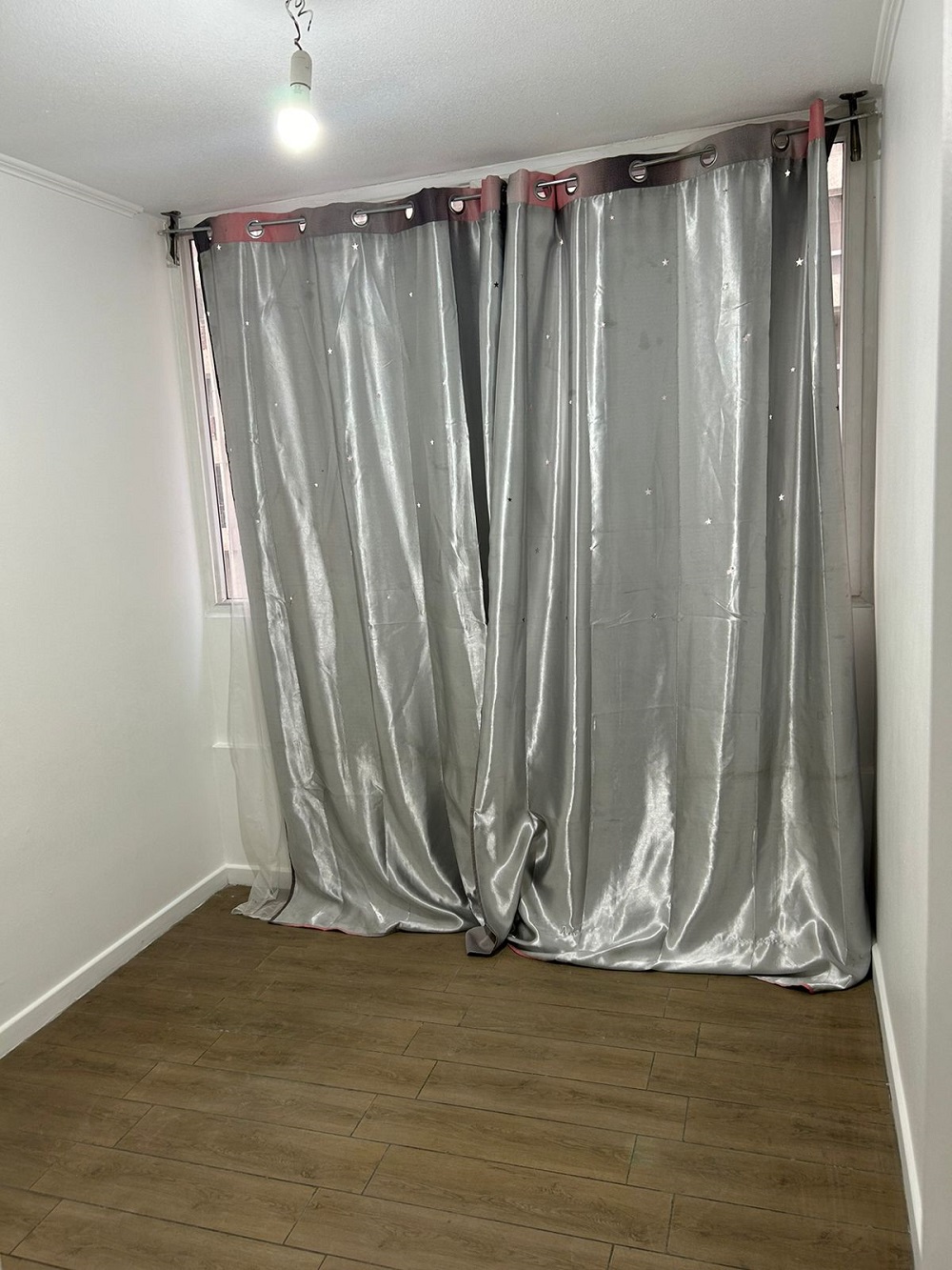 Dormitorio principal con walking closet, dormitorio mediano para cama de una plaza ½ más velador y closet, un baño completo y termo eléctrico para agua caliente, lo que favorece en el pago de gastos comunes.