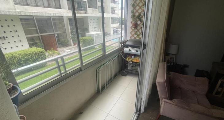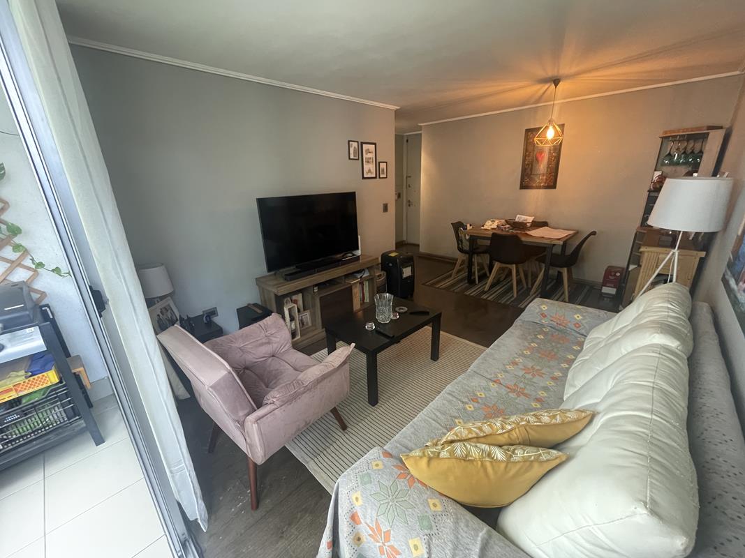 Excelente departamento con entrada a recepción y living y comedor muy buen tamaño, salida a balcón con vista a áreas verdes al interior de la comunidad.