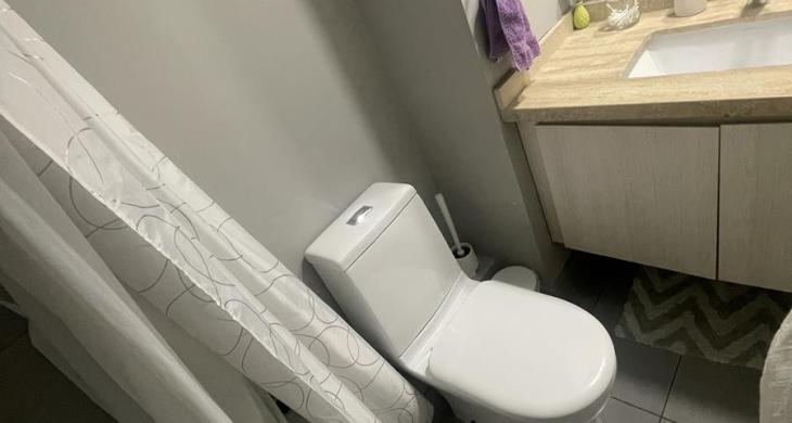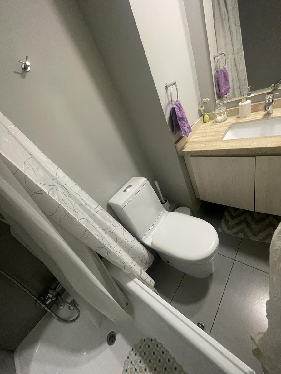 Dos dormitorios, principal es suite con capacidad para cama de dos plazas o king, walking closet y baño completo, con tina y ducha, mueble en lavamanos.