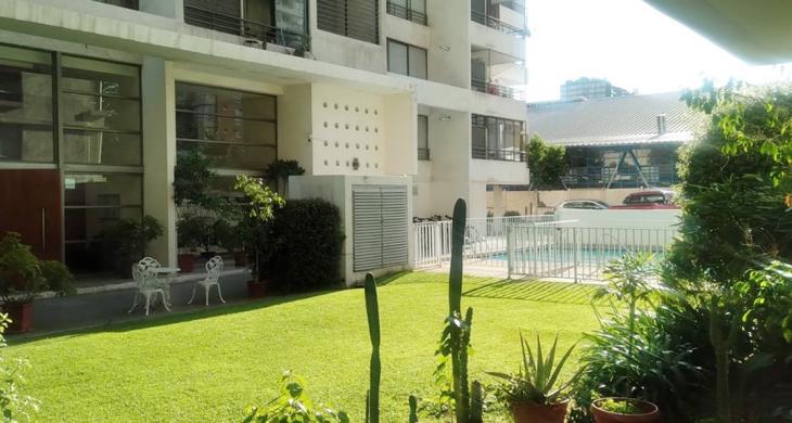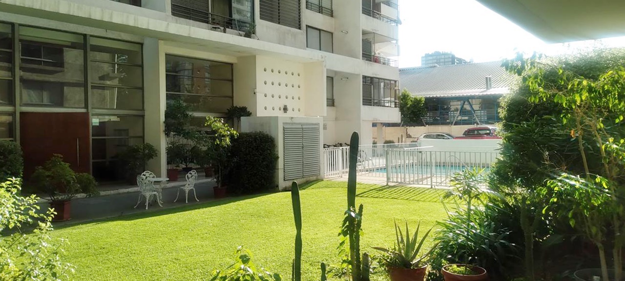 Tiene estacionamiento de visitas, bicicletero, piscina en el primer piso, áreas verdes, sala de eventos, multiuso, gimnasio.