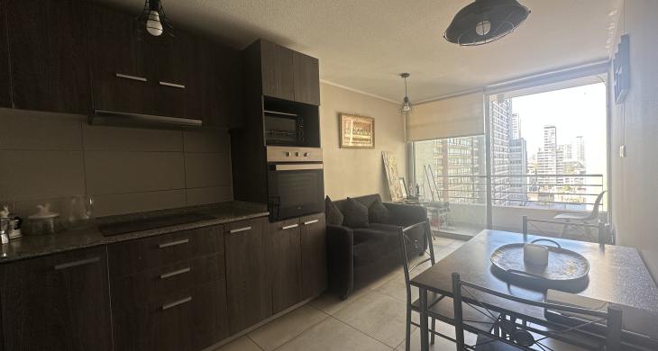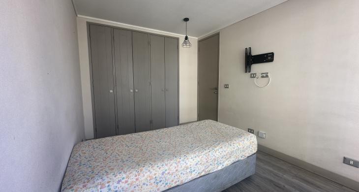 Esta sofisticada unidad, construida en el año 2019, se presenta como una oportunidad única para quienes buscan calidad de vida y funcionalidad en un entorno urbano consolidado. Con una superficie total de 46 metros cuadrados, el inmueble distribuye eficientemente sus 43 metros cuadrados construidos, sumando una agradable terraza de 3 metros cuadrados ideal para disfrutar del aire libre con una perspectiva privilegiada de la ciudad. El programa arquitectónico contempla dos dormitorios espaciosos con closet y un baño completo con terminaciones contemporáneas, espacio para home office, conexión para lavadora y una cocina integrada al living comedor lo que hace un lugar acogedor.