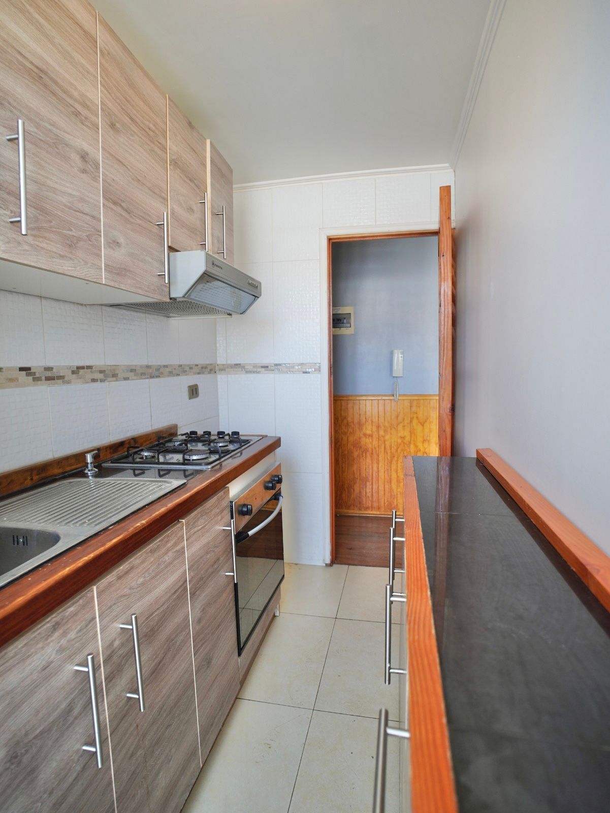 * Cocina cerrada, amoblada y equipada con encimera de 4 platos, horno empotrado y campana