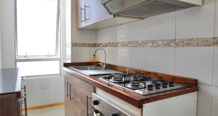 Está en un tercer piso, no hay ascensor, cuenta con acceso controlado y conserjería las 24 horas; condominio con áreas verdes, piscina para niños, quinchos y sala de eventos.
