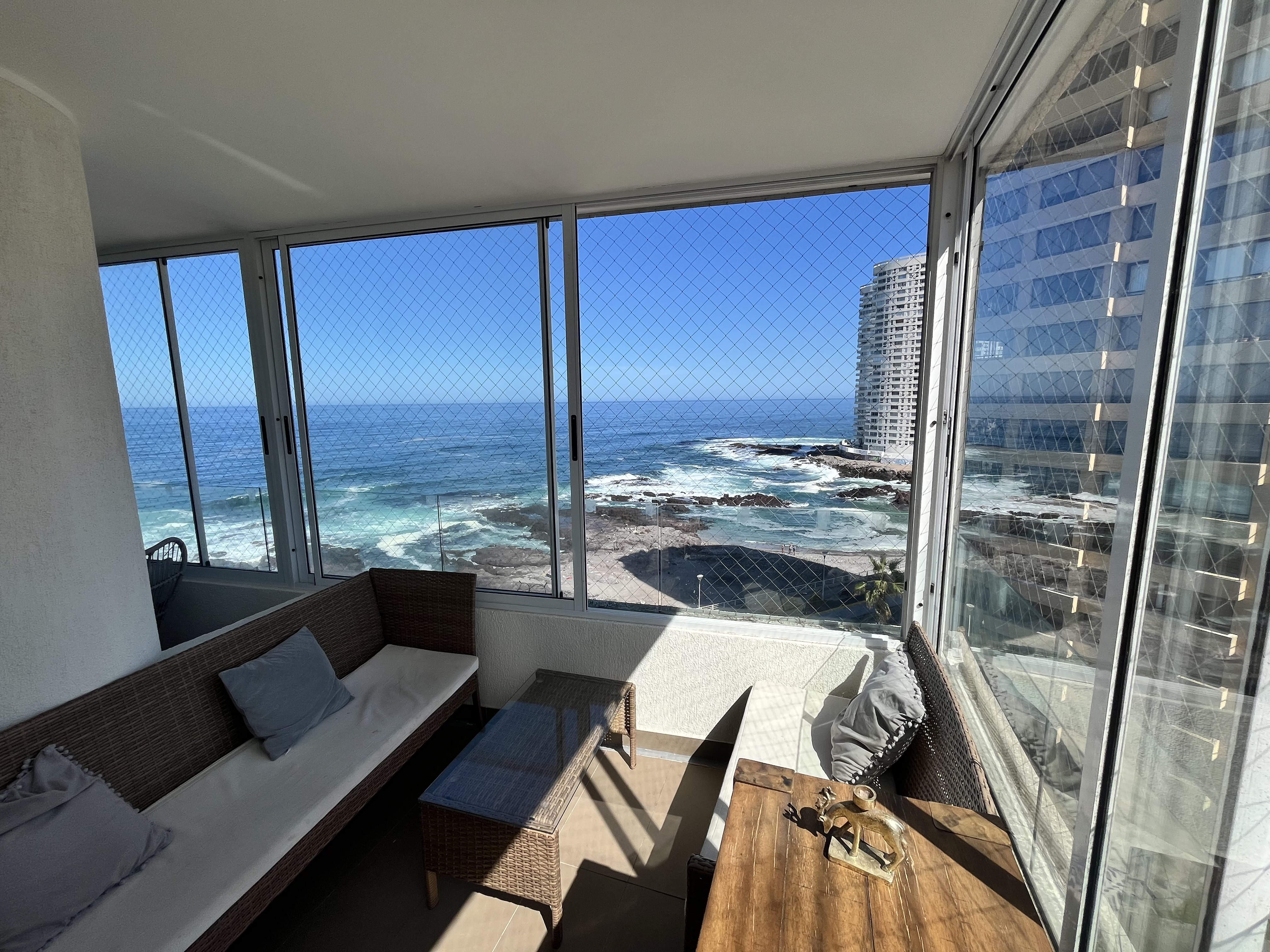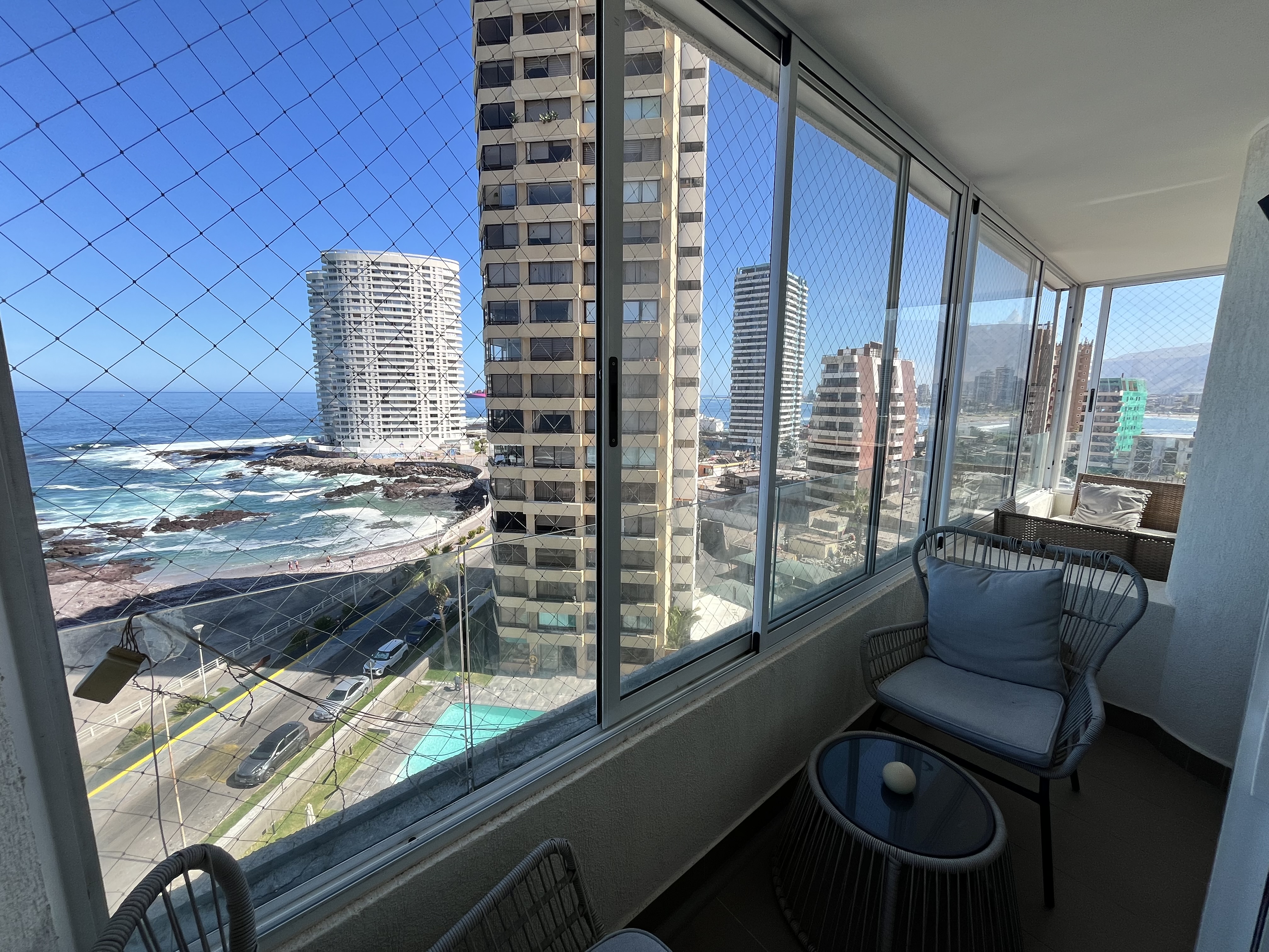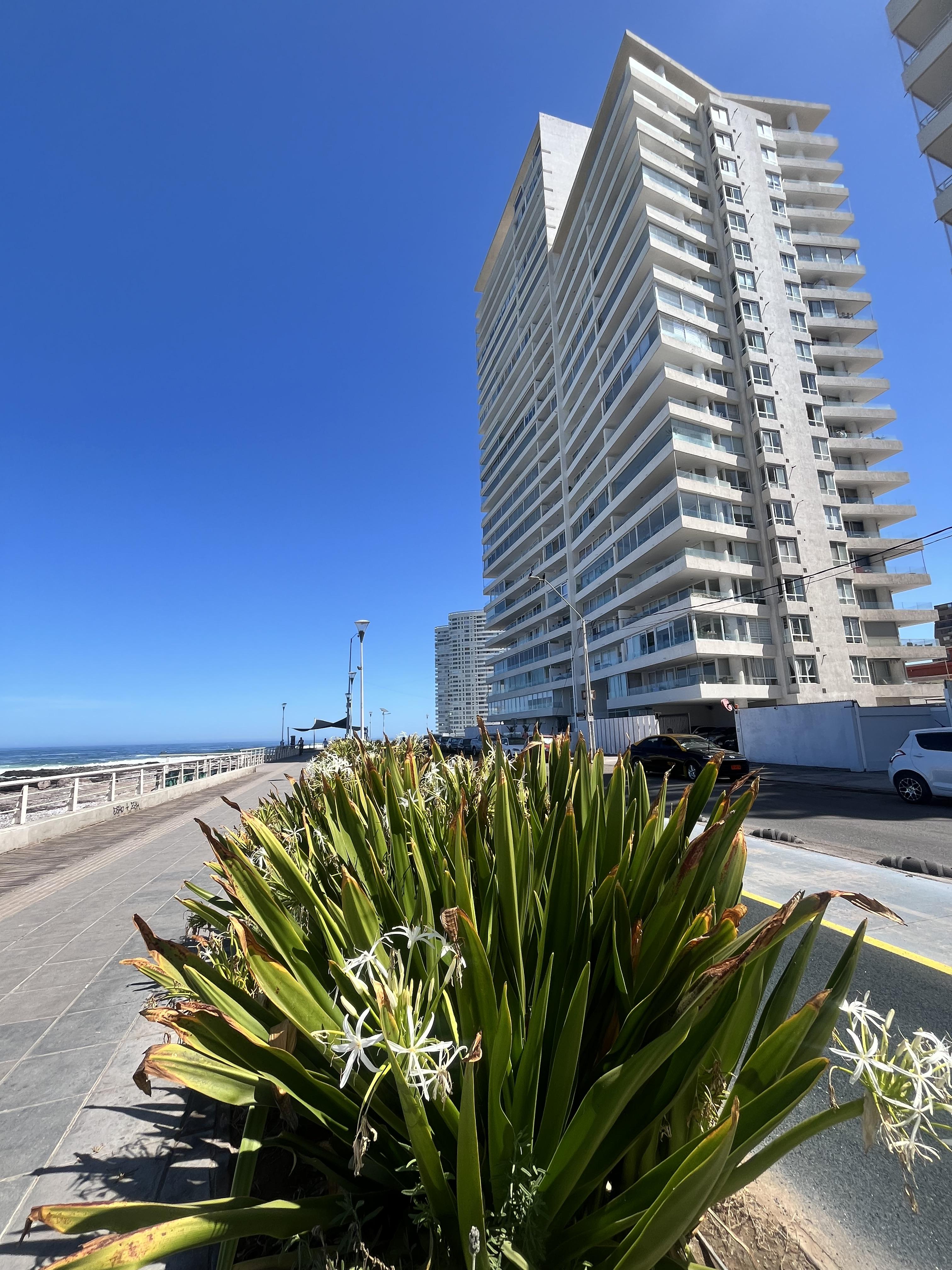 Ubicado en Edificio Península, frente a la playa, sector consolidado, ceca de supermercados, mall, zonas de servicios y universidades. A pasos de parques infantiles, Playa Brava, cerca de Playa Cavancha y de los mejores retaurantes, cafeterías y bares de la cuidad.