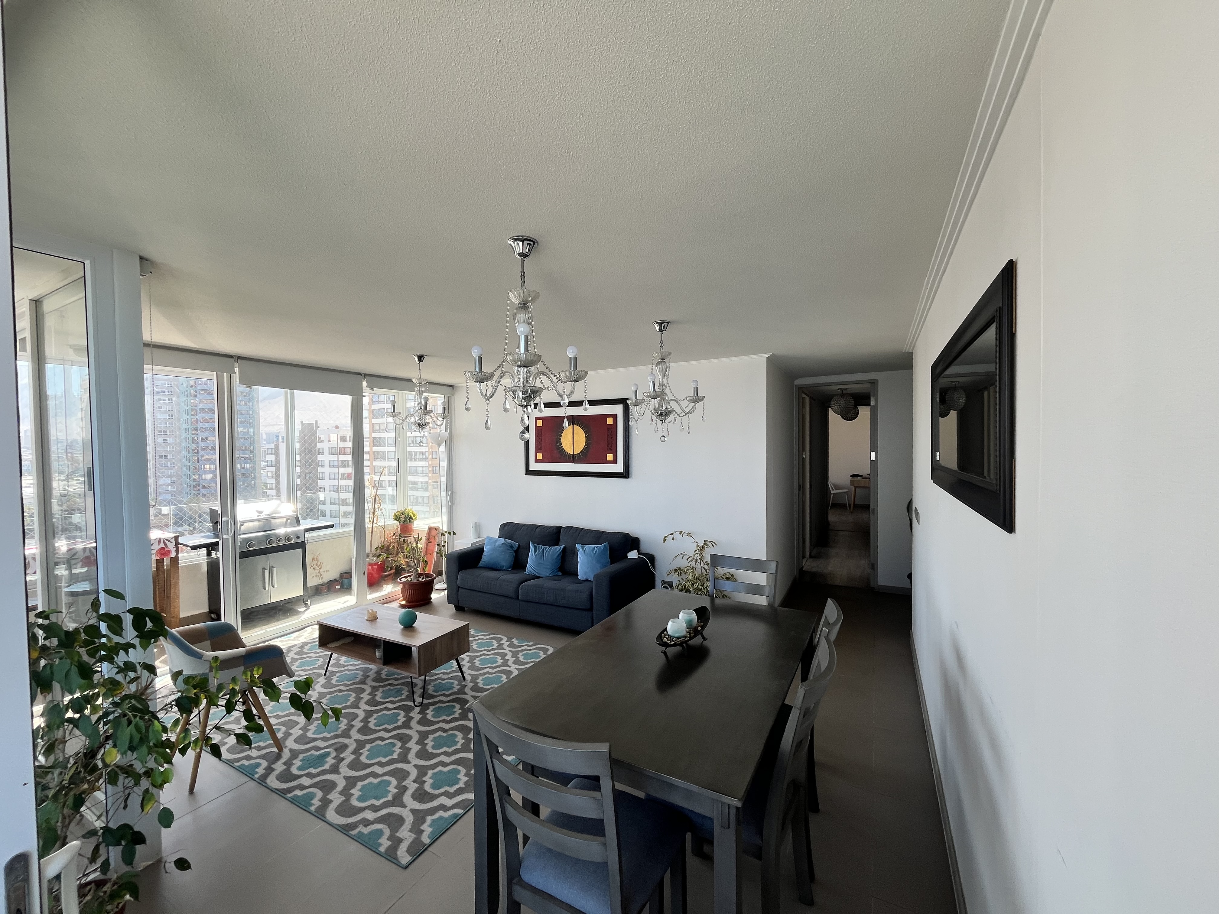 El departamento cuenta con más de 100 mt2 de espacio interior y más de 20 mt2 de balcón a su alrededor, destacando también con ello su hermosa vista panoramica desde el piso 9.