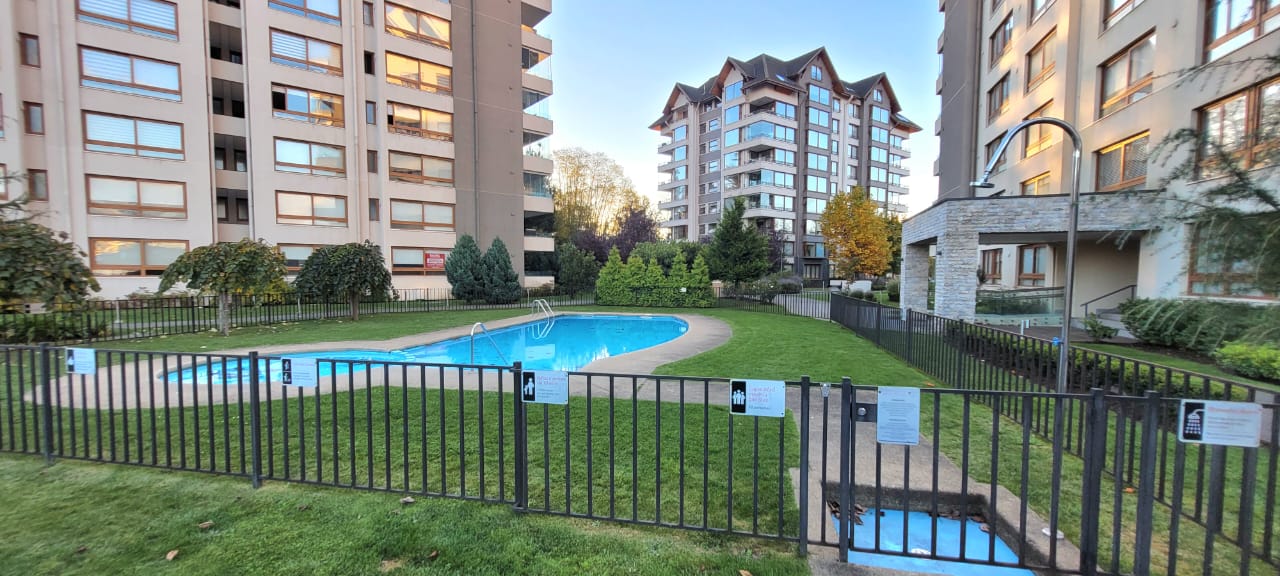 El condominio cuenta con áreas verdes, juegos para niños, conserje 24 hrs, piscina y quincho en cada torre.