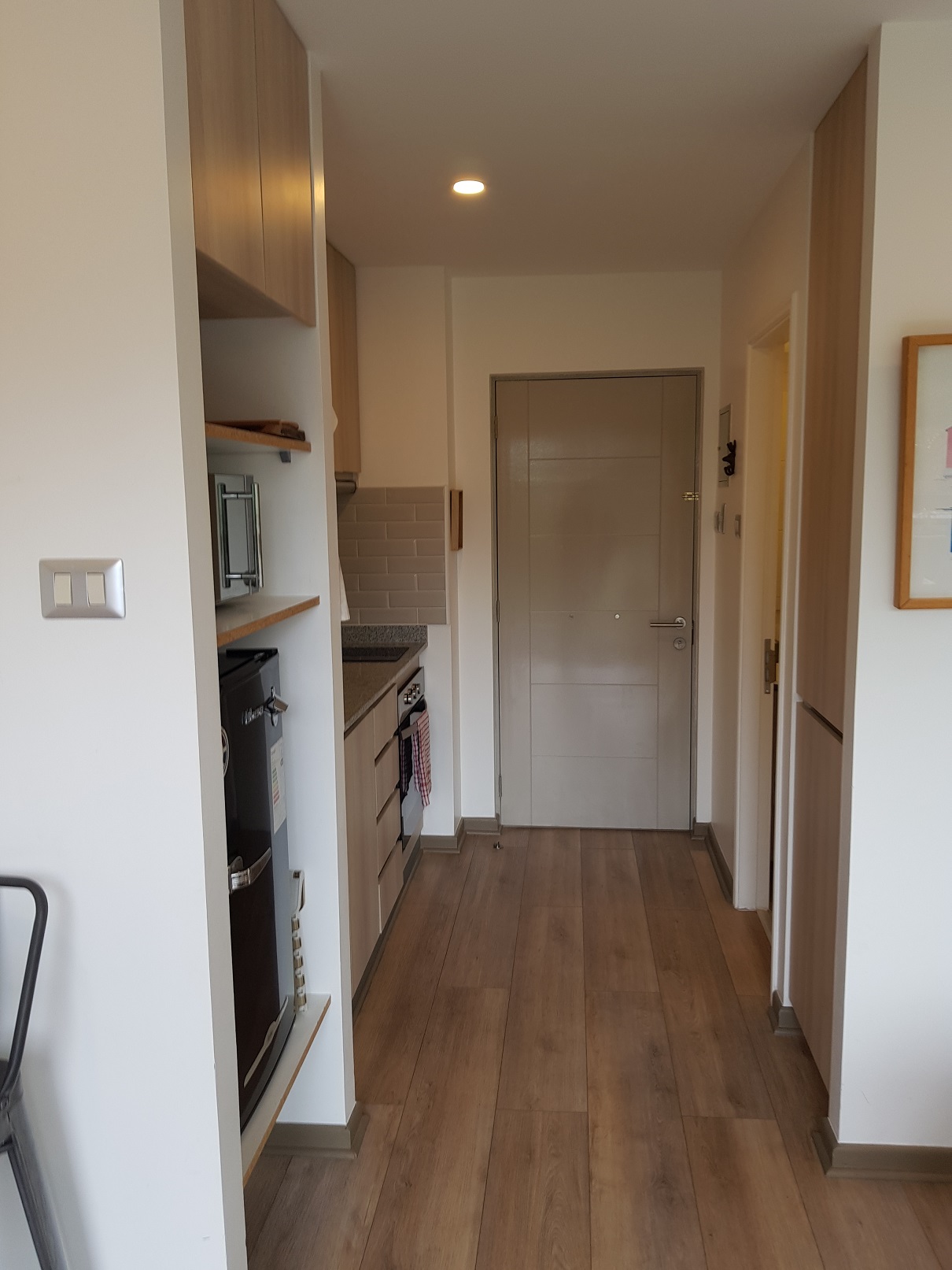 VALMANIC PROPIEDADES presenta esta excelente oportunidad de inversión en uno de los destinos turísticos más cotizados del sur de Chile. Se trata de un acogedor y moderno estudio, completamente amoblado, ubicado en el sexto piso (equivalente a cuarto nivel desde el estacionamiento) del consolidado Condominio Espacios Pucón.