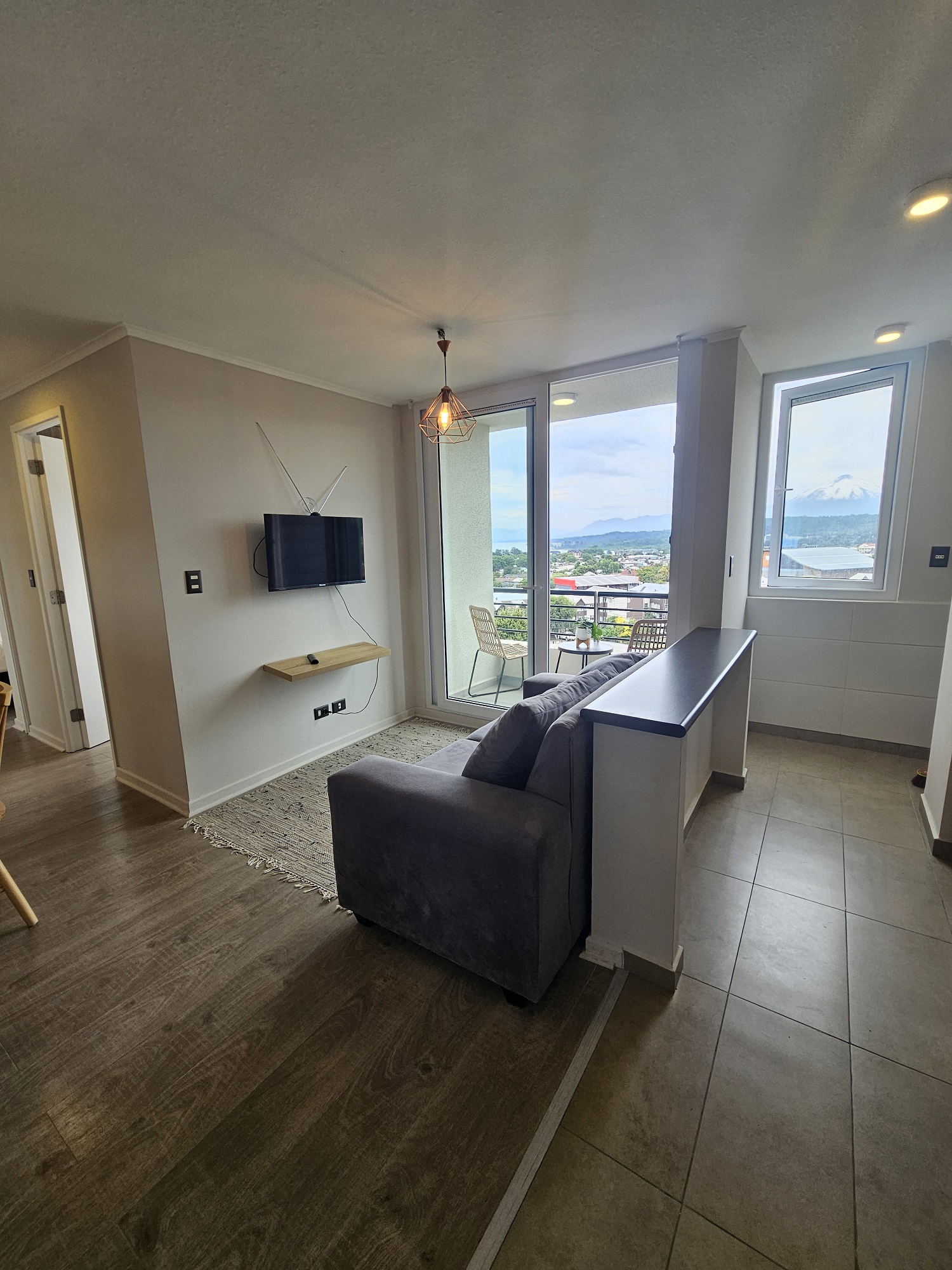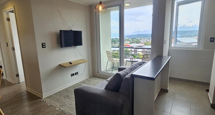 VALMANIC Propiedades presenta este acogedor y cómodo departamento seminuevo, completamente amoblado, ubicado en el séptimo piso del exclusivo Condominio Mirador al Volcán. Disfruta de una vista despejada e inmejorable al Volcán y Lago Villarrica, en un entorno privilegiado a pasos del centro y cercano a todo lo que necesitas día a día.