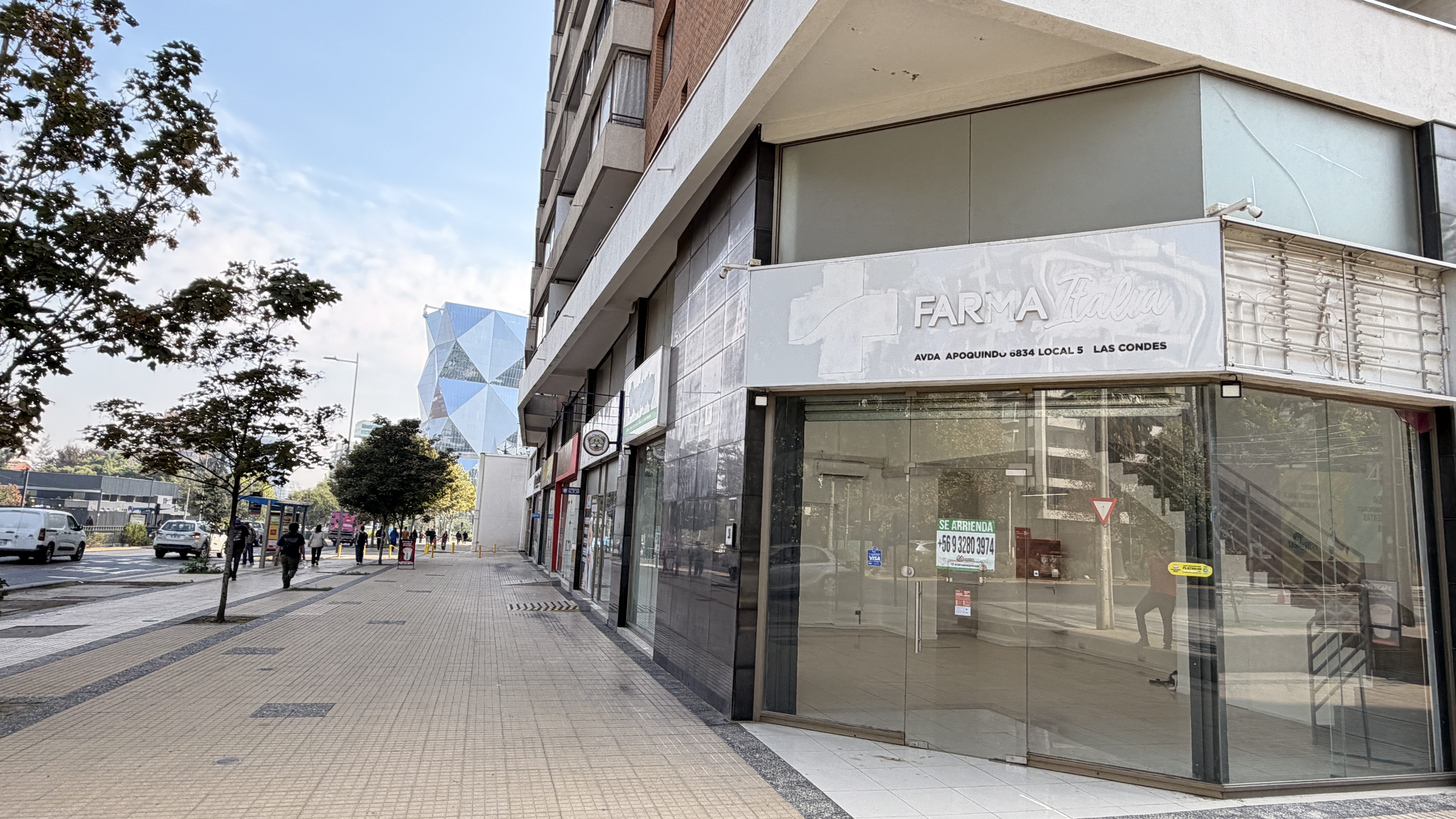 Local esquina con amplia vitrina y presencia directa hacia Av. Apoquindo, una de las avenidas con mayor consolidación comercial y corporativa de Santiago.