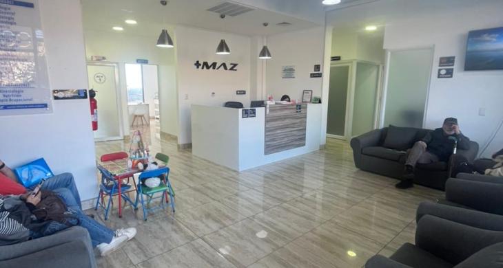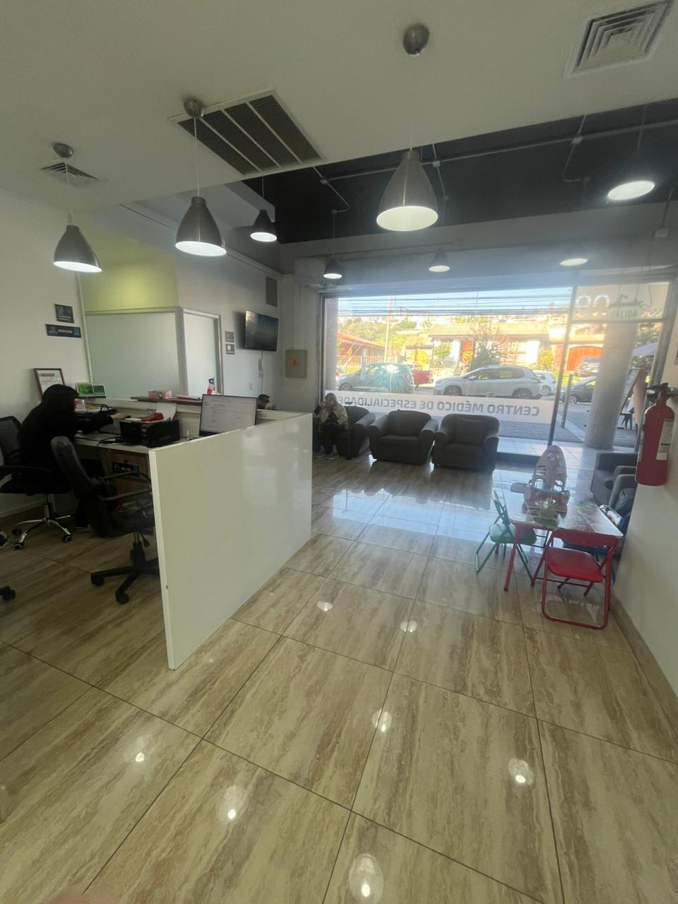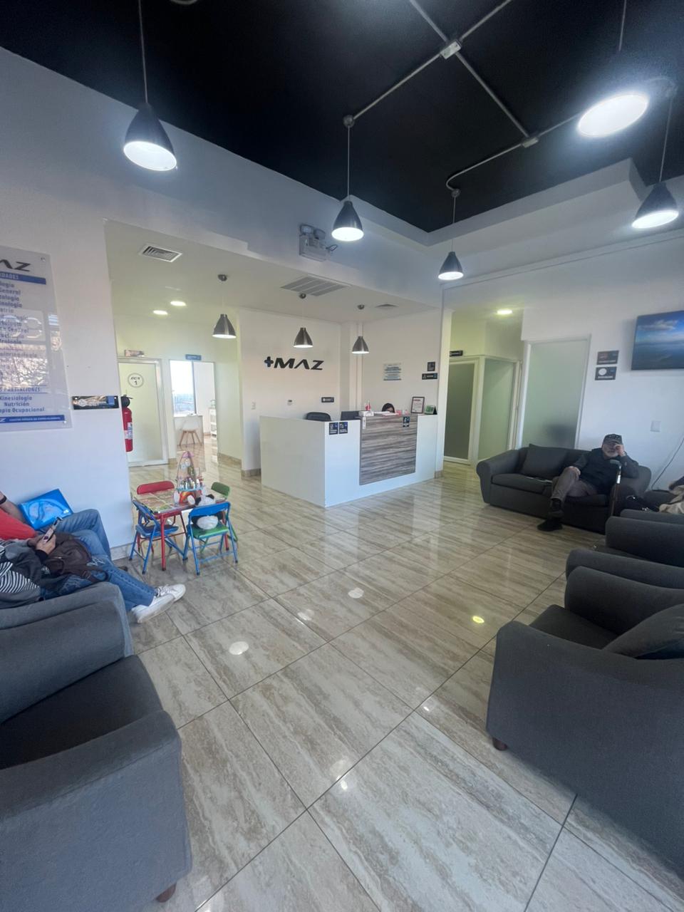 Recepción amplia y luminosa, con área de espera para clientes o pacientes.