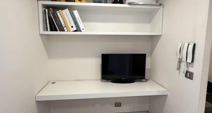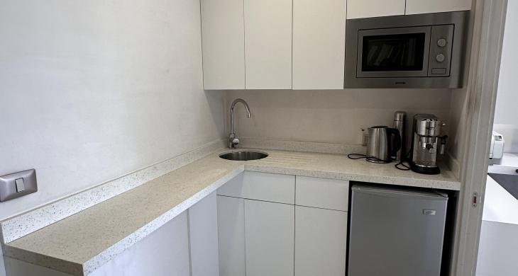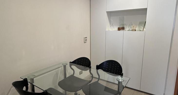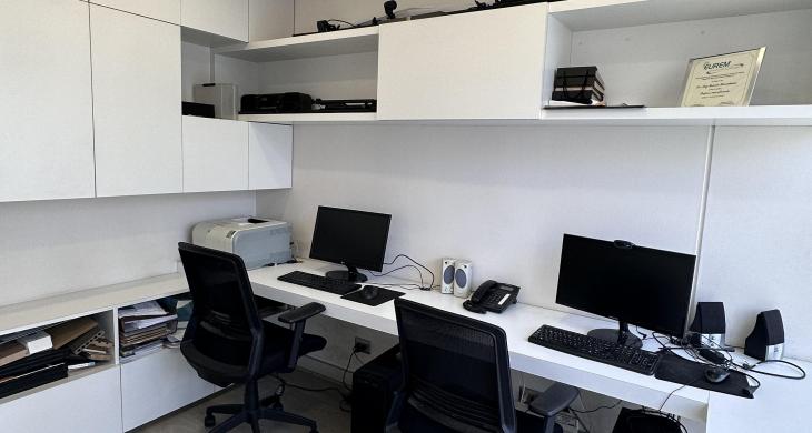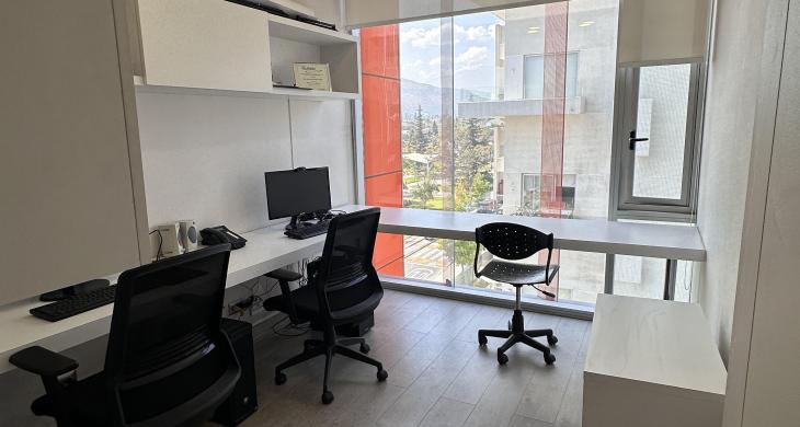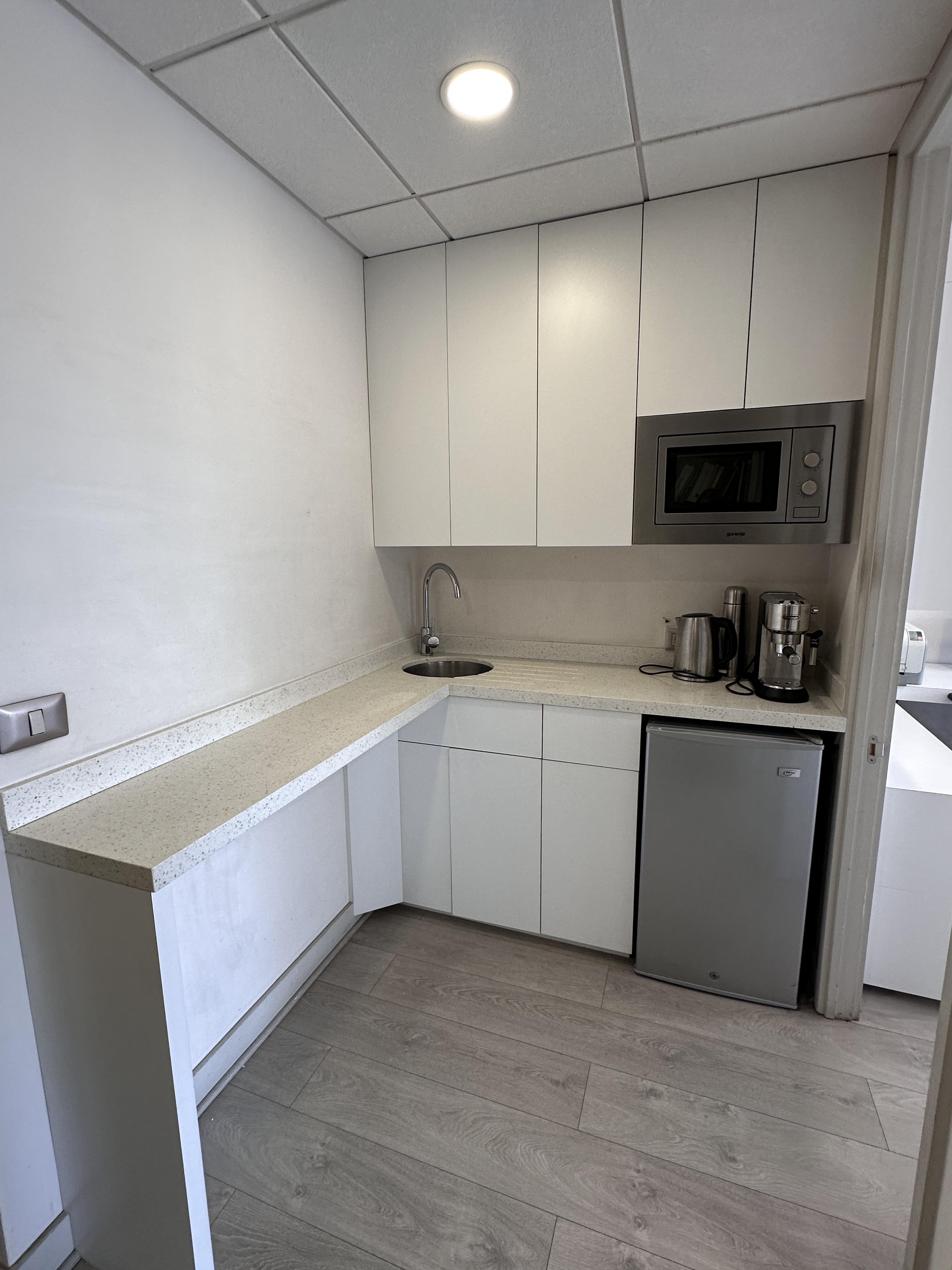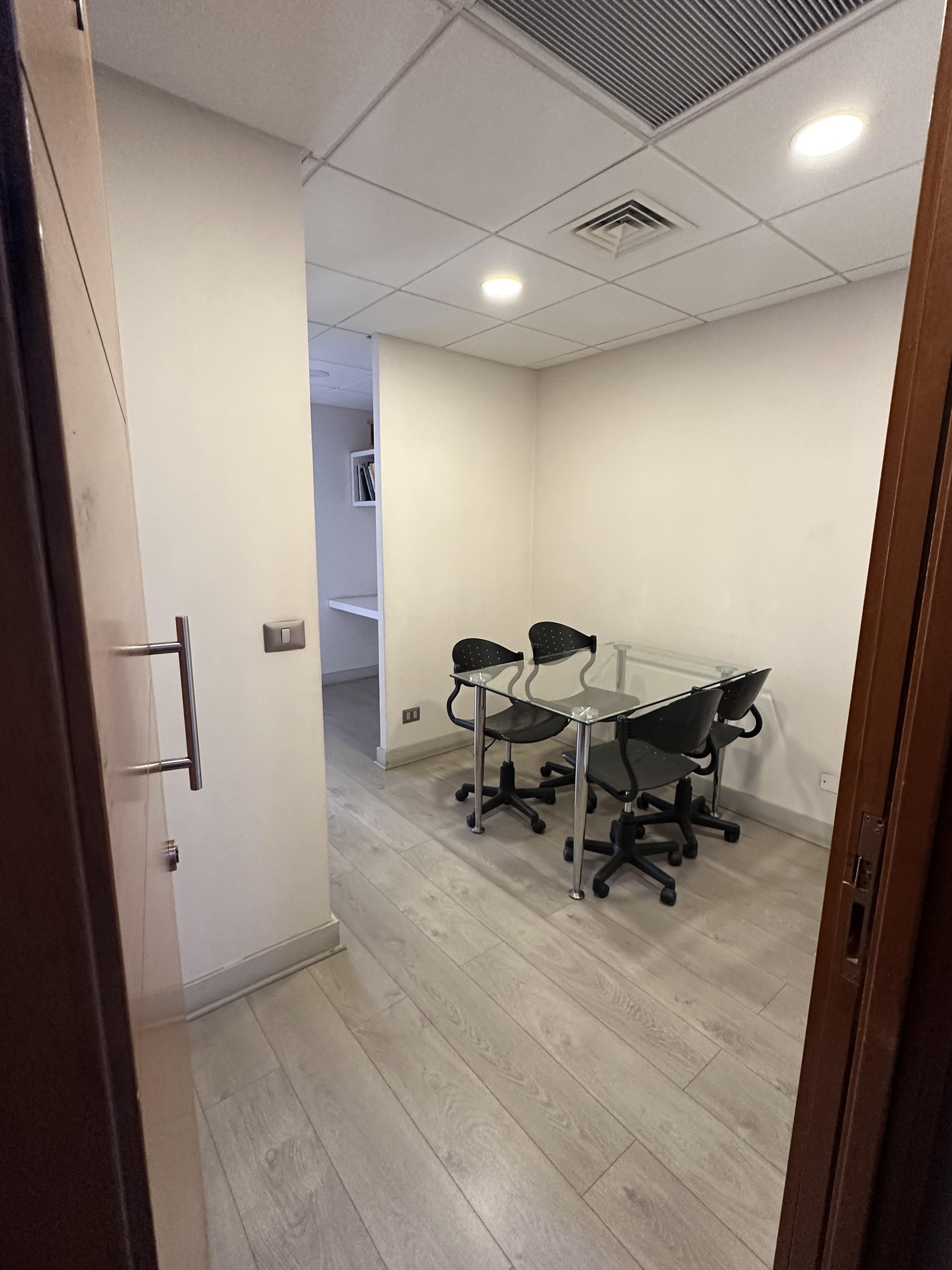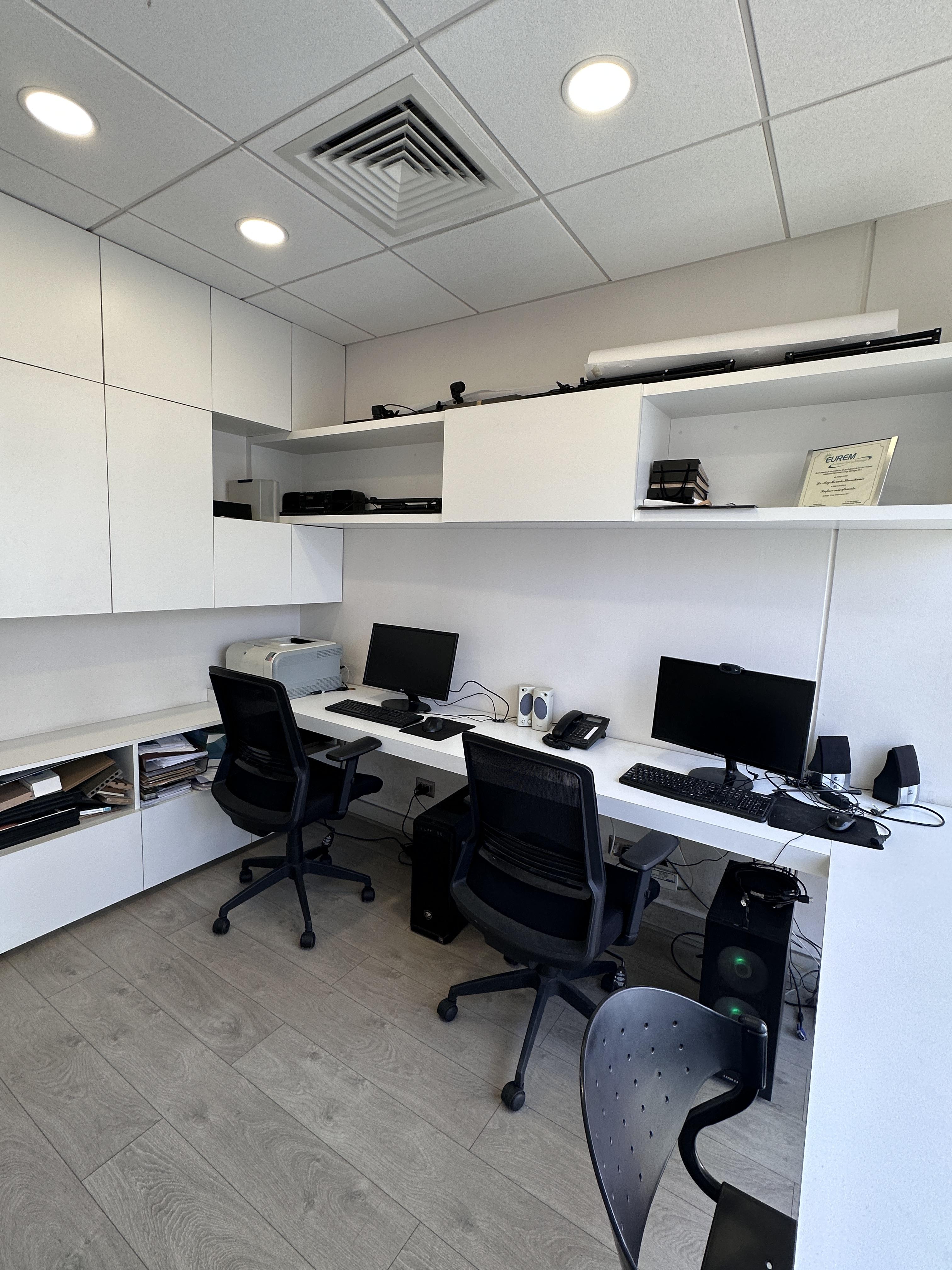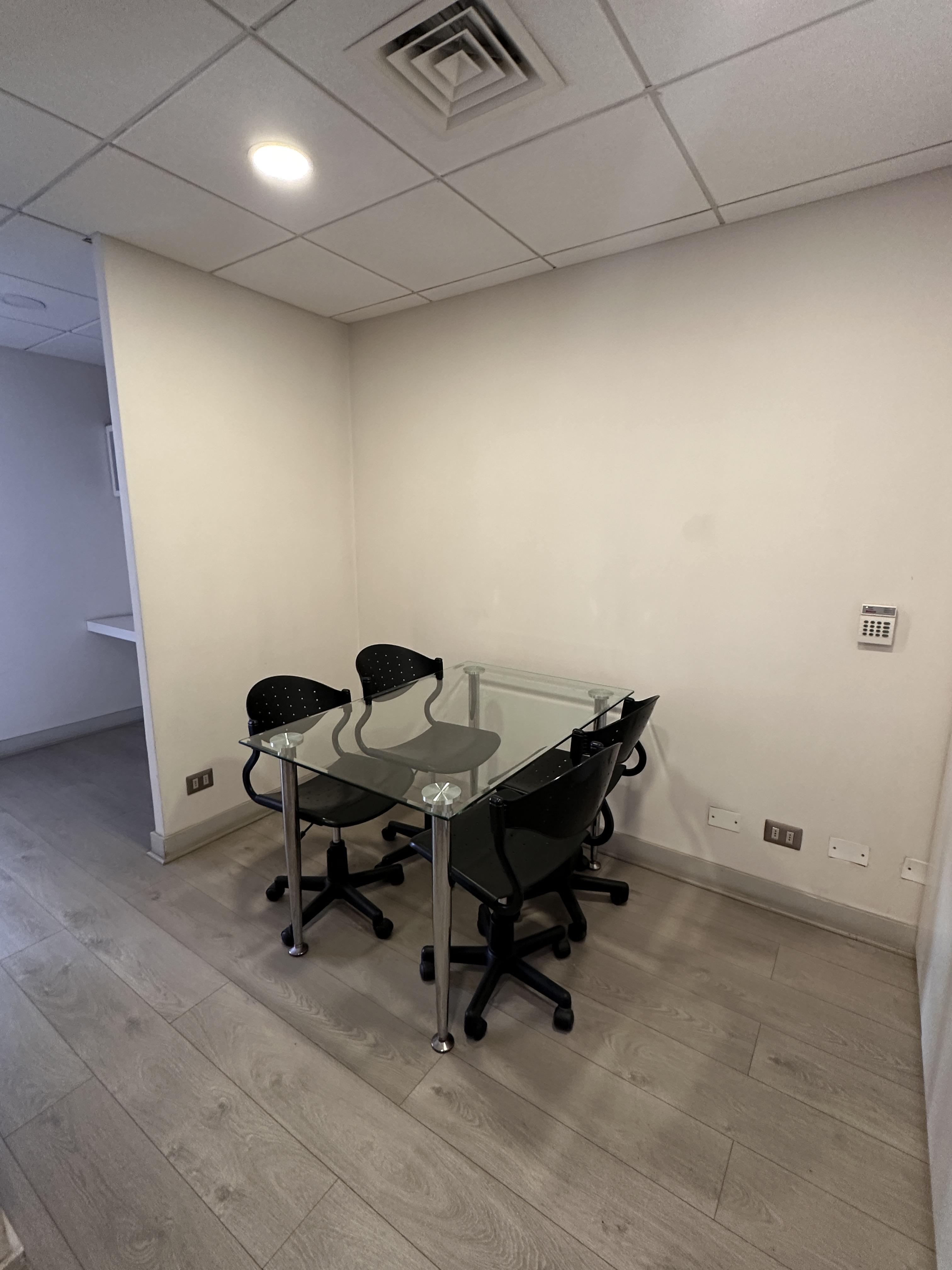 La oficina se encuentra completamente amoblada con estanterías, escritorios, closets en todos los espacios, sillas de escritorio, etc. Cuenta con espacio para recepción, dos privados con escritorios y muebles listos para utilizar, kitchenette con microondas, frigobar, lavaplatos. La oficina cuenta con un baño. Vista Oriente. Sistema de climatización tanto como aire acondicionado como calefacción.