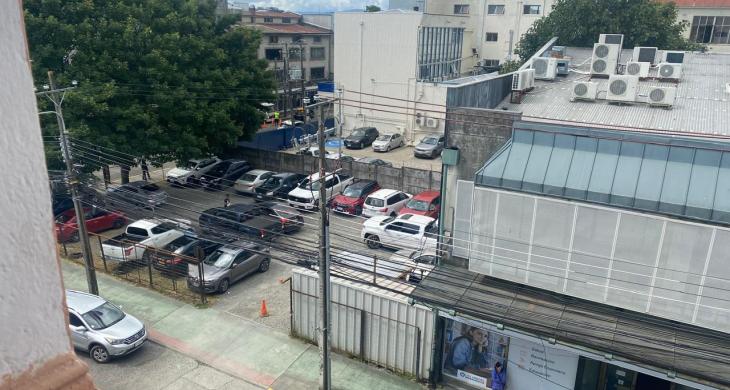 NO tiene estacionamiento, hay lugares para arrendar estacionamiento a pocas cuadras de la oficina.