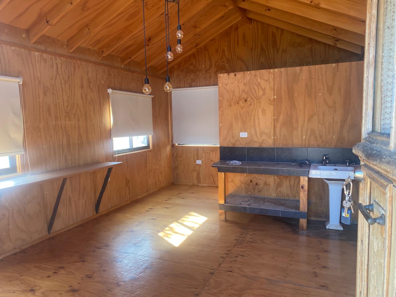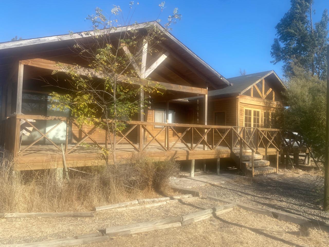 Construcción de madera sobre pilotes con orientación norponiente, ubicada en una parcela plana con piscina, parrilla, bodega y además una cabaña para invitados.
