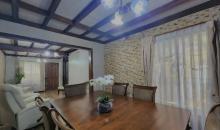 Casa de un piso, con sala living y comedor, cocina equipada, cocina a gas y a leña, con refrigerador y congelador.