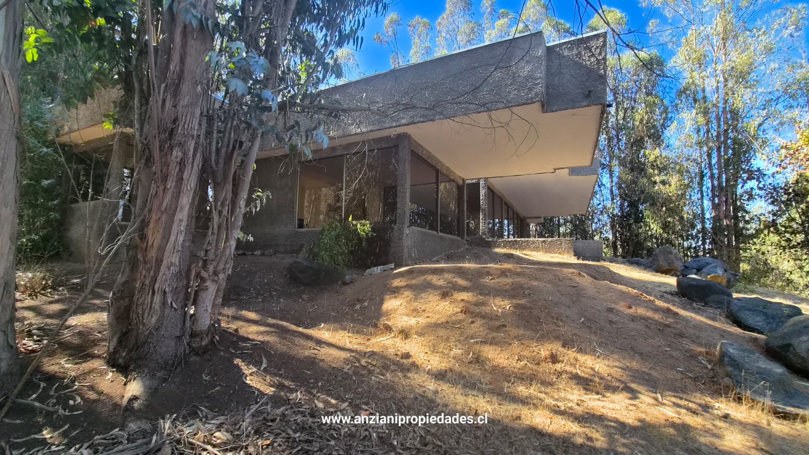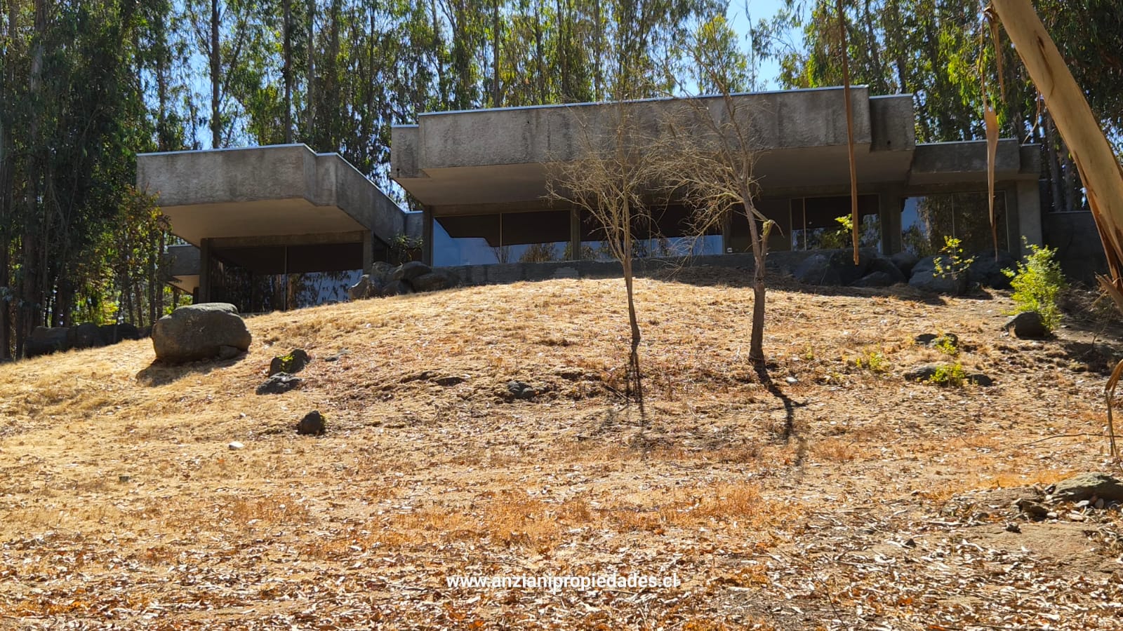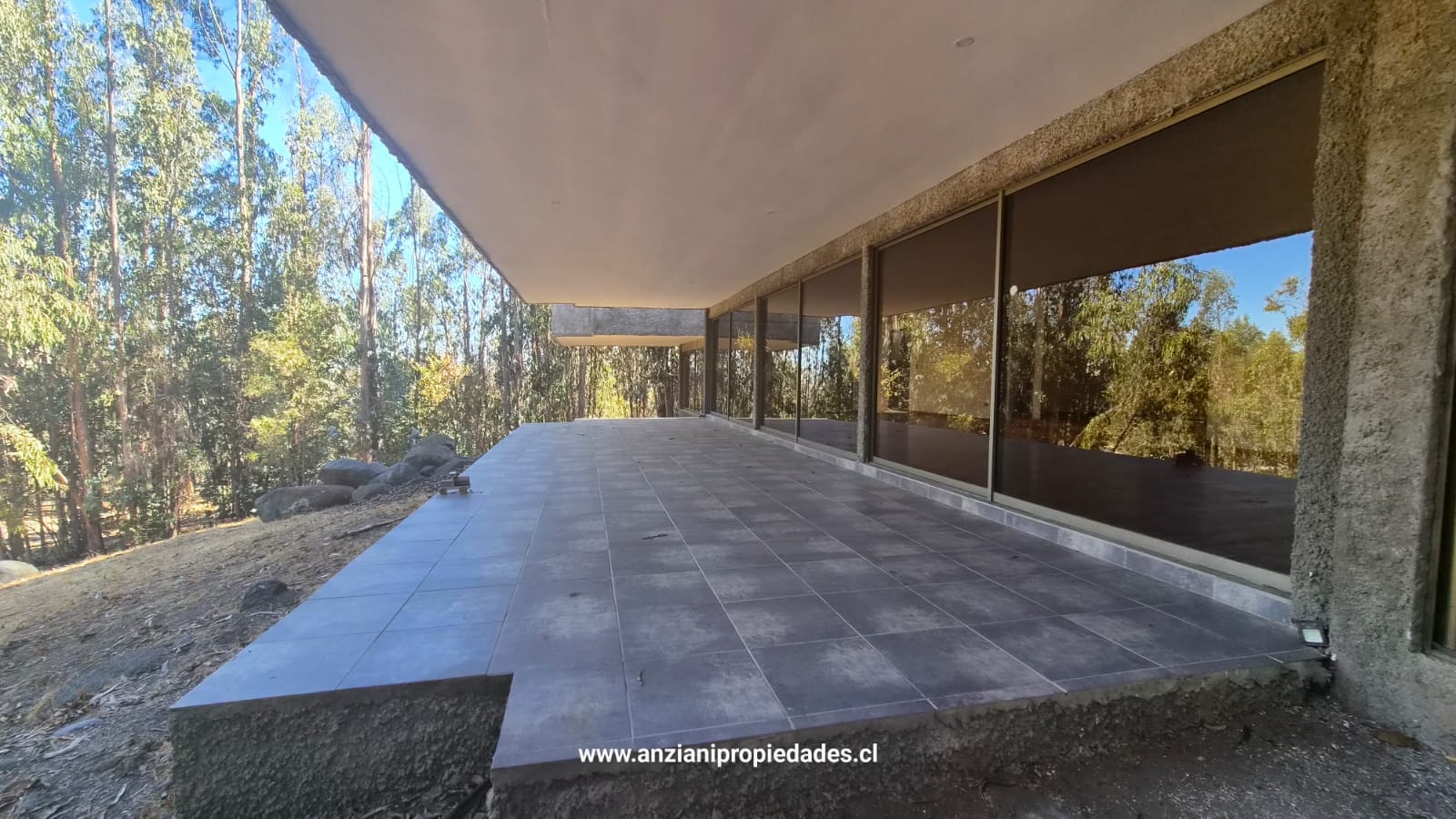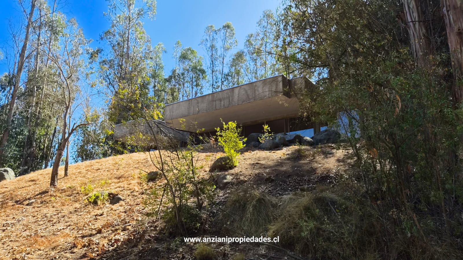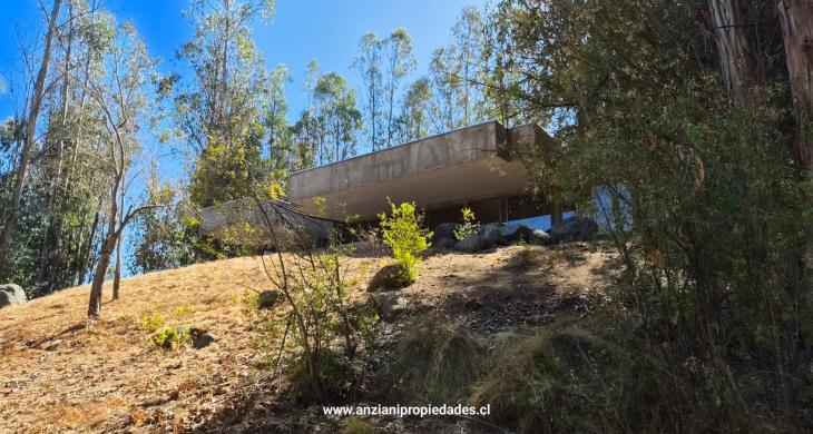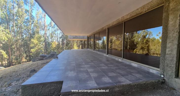 Esta propiedad cuenta con una arquitectura moderna y sólida de 180 m² construidos (con tabiquería interior de alta calidad), ampliándose a un total de 240 m² al incluir su espectacular terraza techada. El diseño exterior en hormigón visto y piedra se integra armoniosamente con el paisaje de eucaliptos y vegetación nativa.