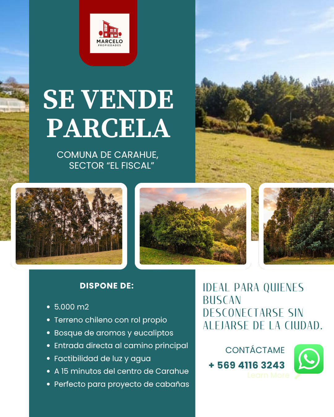 Esta es una ocasión única para adquirir un patrimonio sólido en una zona de alta demanda y desarrollo. Le invitamos a contactar a nuestro corredor de propiedades Marcelo Zenteno, whatsapp +56941163243 para recibir asesoría experta, resolver dudas técnicas y coordinar una visita a terreno para conocer personalmente el potencial de esta propiedad. Asegure su futuro hoy en un entorno natural inigualable.