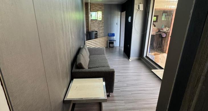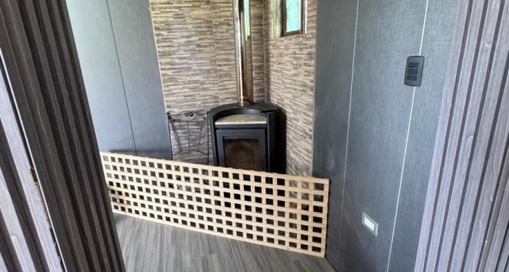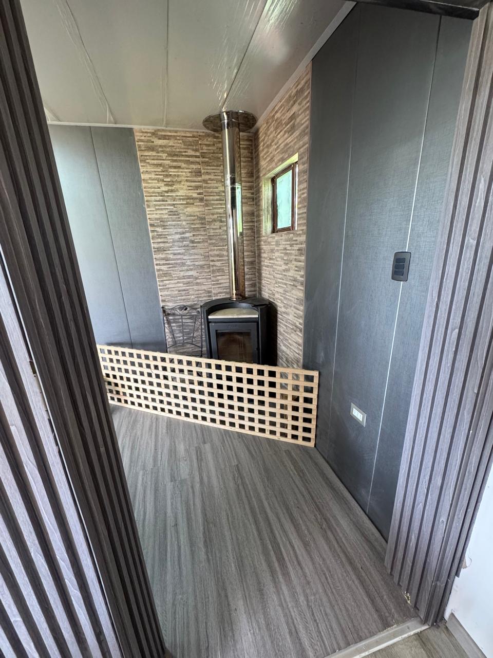living comedor con estufa a leña