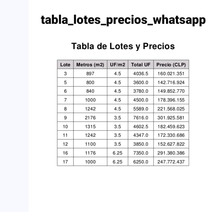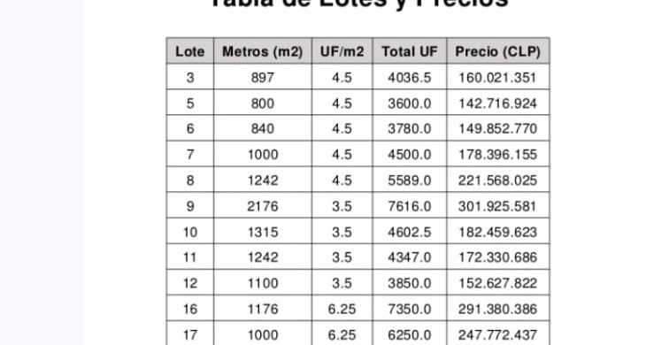 Este terreno desde 800 m² a 2000 m2, (se adjunta en la tabla) cuenta con una forma regular, lo que facilita el diseño y la construcción. Completamente factible de urbanizar y listo para construir, este terreno ofrece la flexibilidad para crear un hogar a su medida o un proyecto que se ajuste a sus necesidades y aspiraciones.